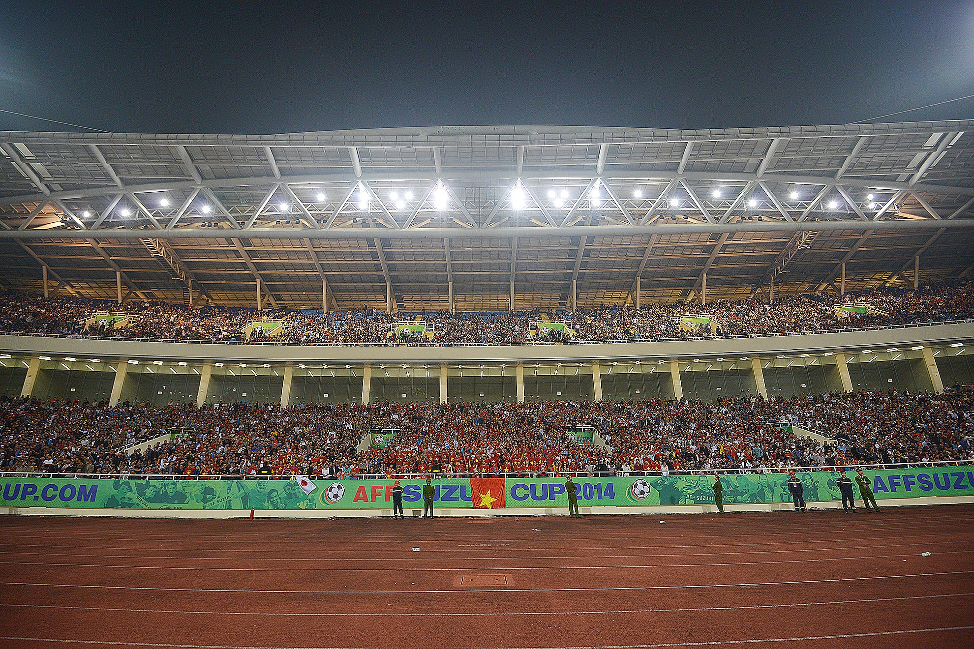 | Khu vực giữa khán đài A SVĐ Mỹ Đình gần như không còn một chỗ trống, ghế trống chỉ còn nhiều ở vị trí sát cạnh khán đài C và D. |