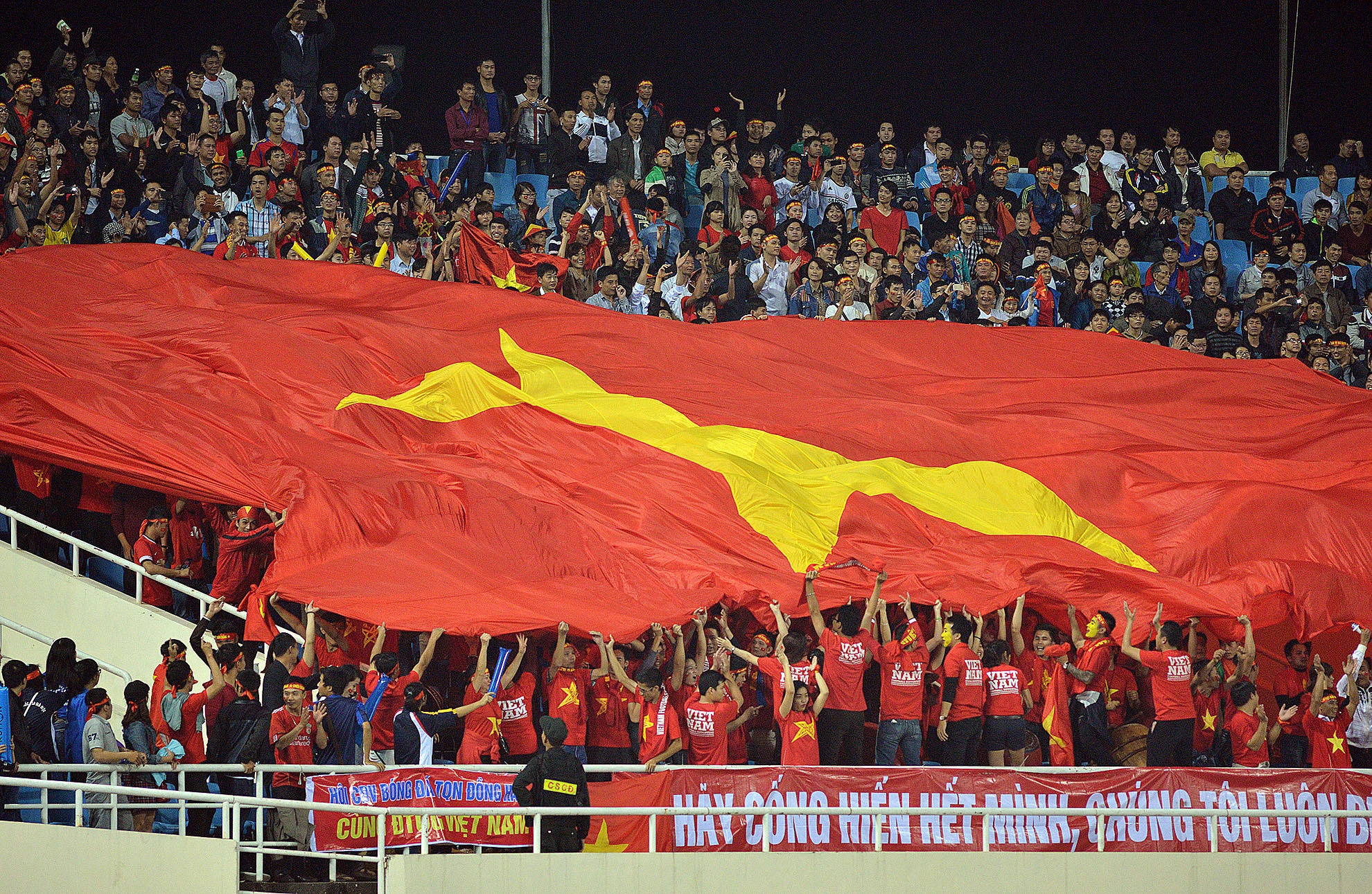 Lá đại kỳ được biển người trên SVĐ Mỹ Đình truyền tay nhau quanh vòng sân Mỹ Đình.