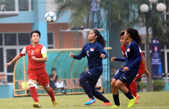 Trận đấu U19 nữ Việt Nam gặp U19 Singapore ở lượt trận đầu tiên diễn ra lúc 15h15 chiều nay (5/11) trên sân Trung tâm đào tạo trẻ VFF. Dưới sự chỉ đạo của HLV trưởng Nguyễn Duy Hùng, các cô gái U19 Việt Nam nhanh chóng có bàn thắng mở tỷ số ở phút thứ 5 do công của Bùi Thị Trang.