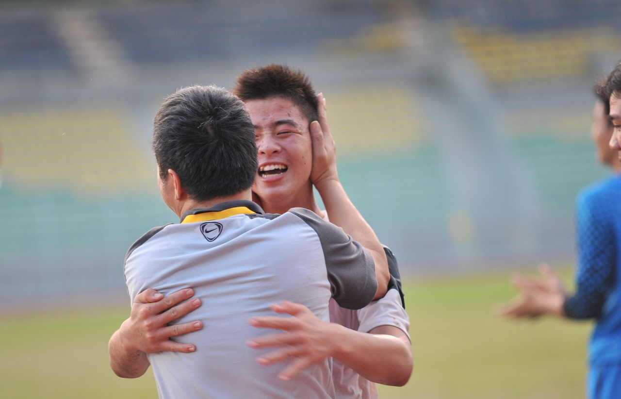 | Đây là chiến thắng quan trọng nhất và cũng là lần đầu tiên CĐV chứng kiến các cầu thủ U19 Việt Nam ăn mừng như vậy. |