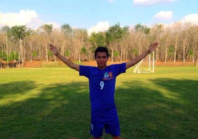 | Lê Hoàng Thống trong màu áo đội năng khiếu HAGL nên trên ngực trái áo không có logo Học viện JMG. |