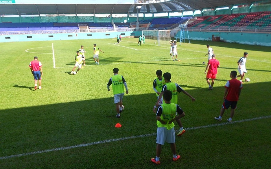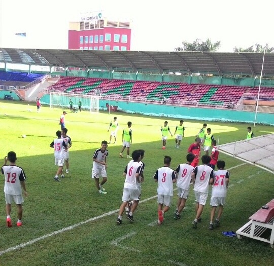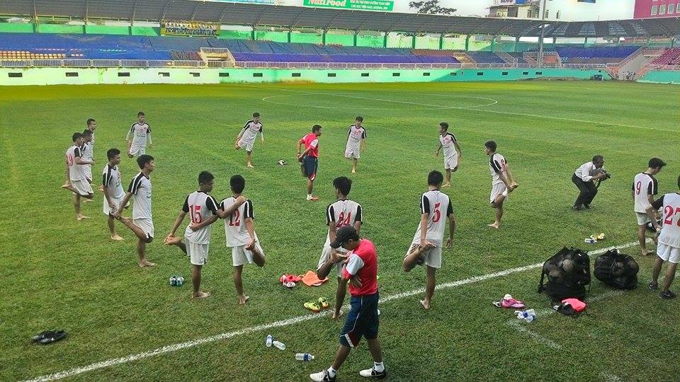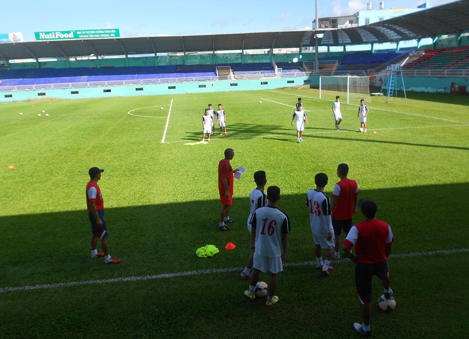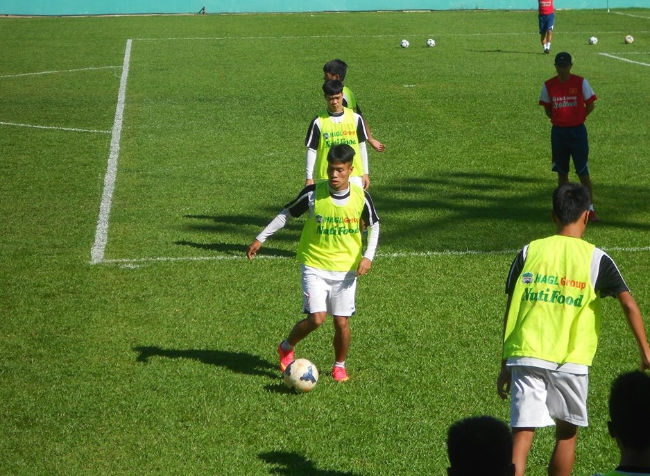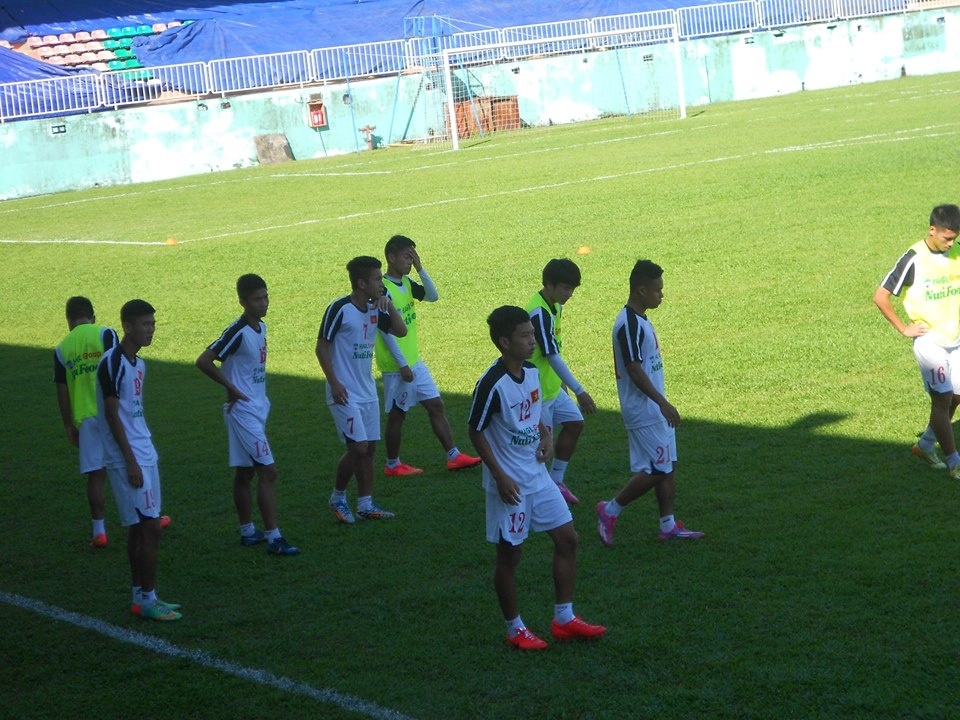 | Buổi tập bắt đầu từ lúc 15h00, các cầu thủ U19 được BHL chia thành từng nhóm nhỏ chạy vòng quanh SVĐ Pleiku. |