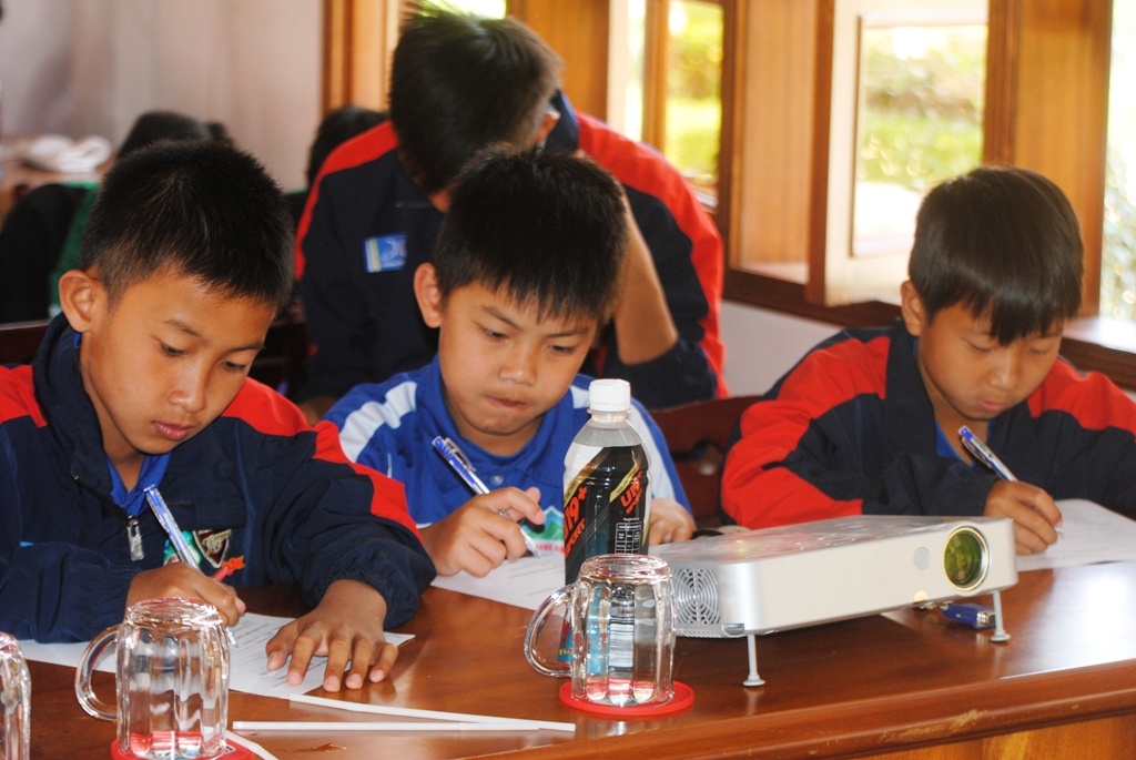 | Các cầu thủ U19 Việt Nam hào hứng làm bài kiểm tra sau buổi tư vấn. |