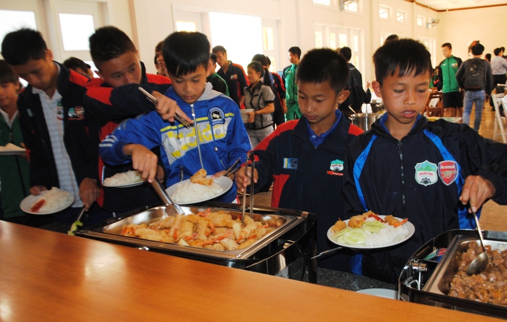 | Bữa ăn với nhiều món tự chọn tại học viện HAGL-Arsenal JMG. |