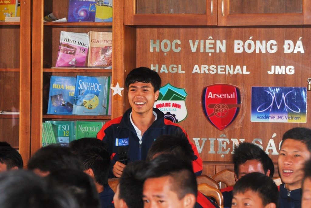 Sáng 16/2 các bác sĩ của trung tâm dinh dưỡng TP.HCM và đối tác dinh dưỡng của học viện HAGL-Arsenal JMG đã có buổi thuyết trình về dinh dưỡng trong thể thao cho các học viên của học viện cũng như các cầu thủ của đội năng khiếu Gia Lai.