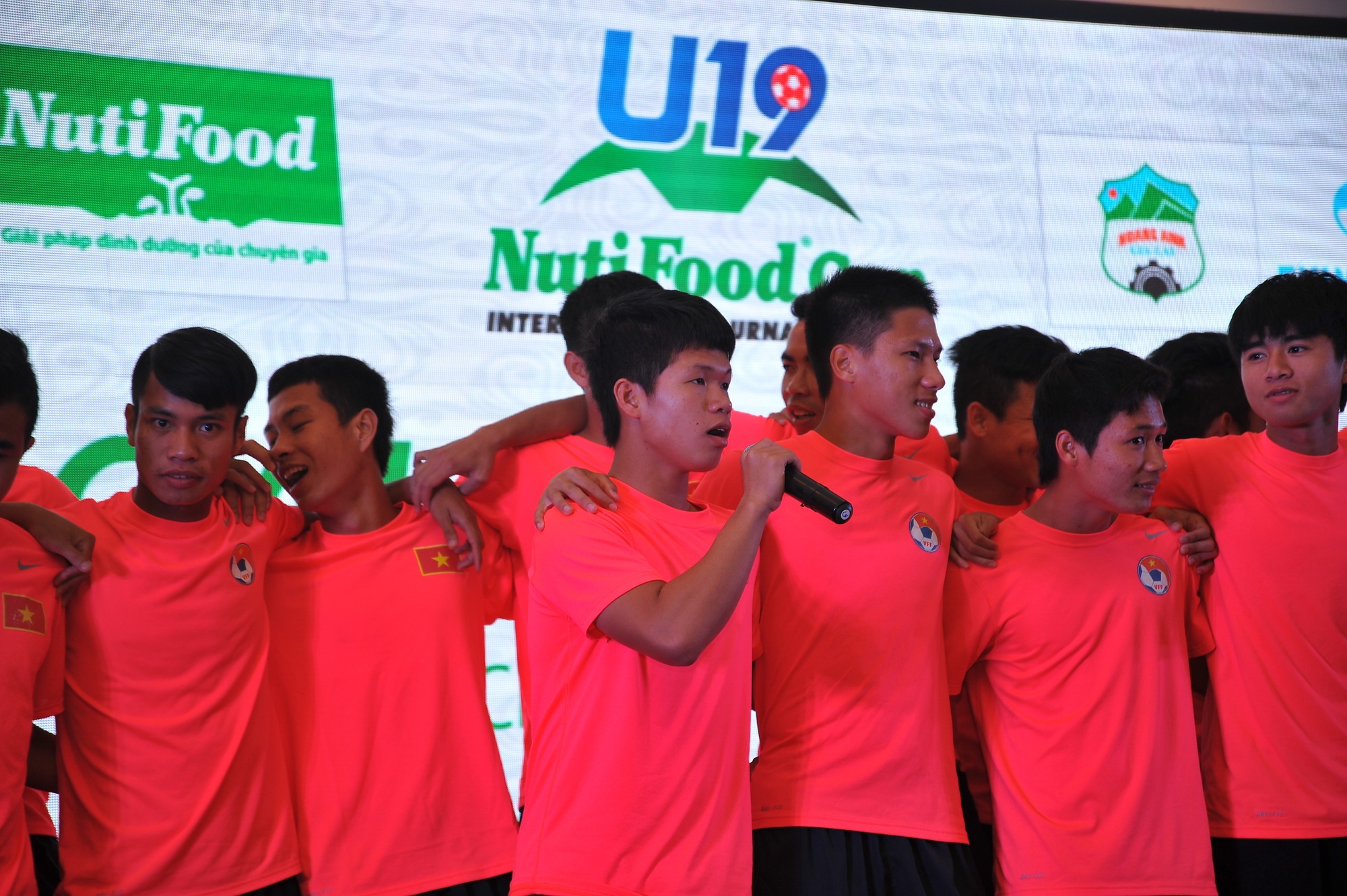 Đội trưởng Lương Xuân Trường- cầu thủ giỏi ngoại ngữ nhất đội đã bắt vè để các đồng đội cùng hát tập thể dành tặng cho mọi người. Không chỉ đá bóng “cừ”, các cầu thủ U19 Việt Nam còn hát rất hay.