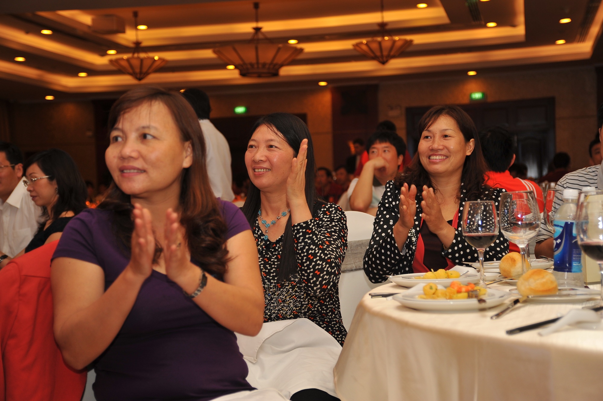 | Mẹ của Đông Triều (áo tím) và mẹ các cầu thủ U19 Việt Nam khác cũng đến dự đêm gala. |