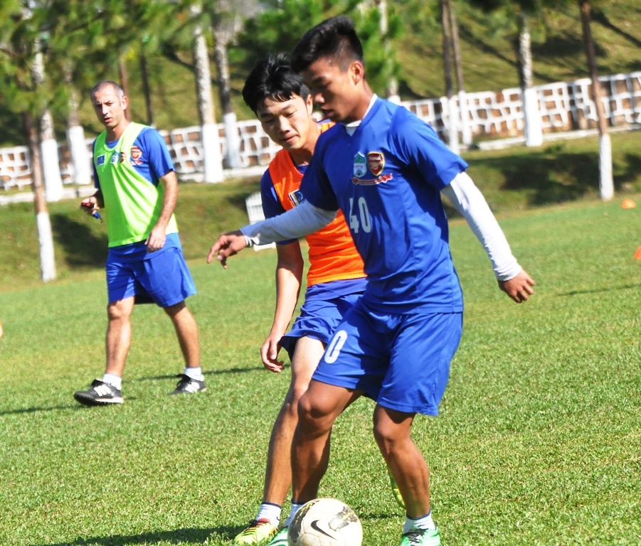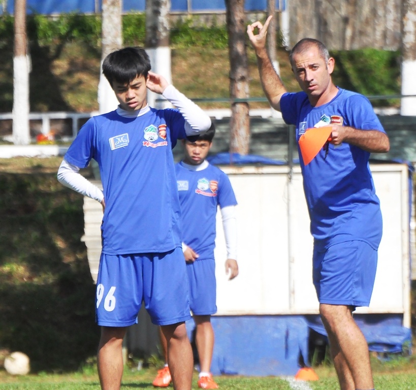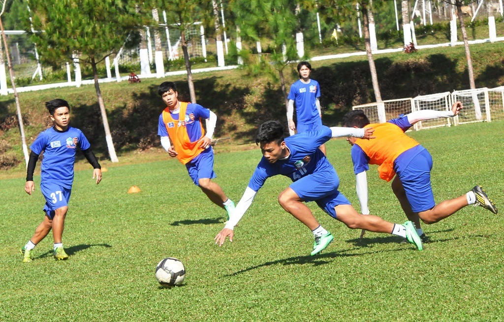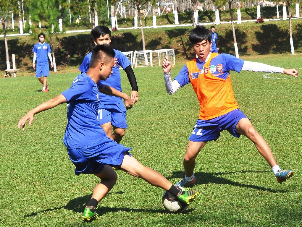 | Trước khi U19 hội quân, những thành viên của đội rất tích cực tập luyện trong màu áo học viện HAGL-Arsenal JMG dưới sự giám sát chặt chẽ của HLV Guillaumer Grachen. Trong chiều nay, Grachen đã chia 2 đội hình, mỗi đội 10 cầu thủ, đá 2/3 sân 11 người, chú trọng đến những pha phối hợp nhanh, ít chạm. |