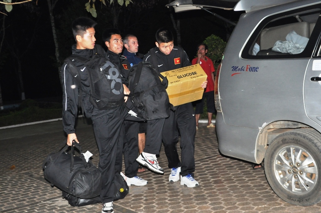 | 18h cùng ngày, 4 cầu thủ Phí Minh Long, Đức Huy, Trương Văn Thiết và Duy Mạnh cùng bác sĩ Hoàng Nghĩa Dương đã hội quân cùng đội. Trong khi đó, trưởng đoàn Dương Nghiệp Khôi sẽ đón đoàn ở TP.HCM. |