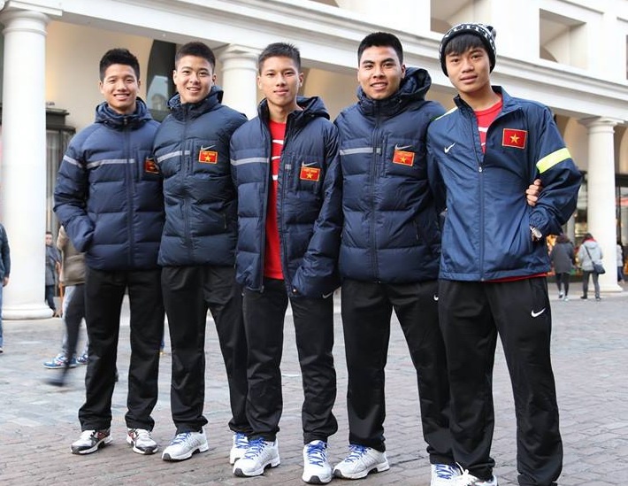 | Trước khi lên đường sang Anh, đội U19 Việt Nam phải tự lo khâu quốc kỳ lên áo khoác, thay vì được nhà tài trợ của VFF hỗ trợ. |