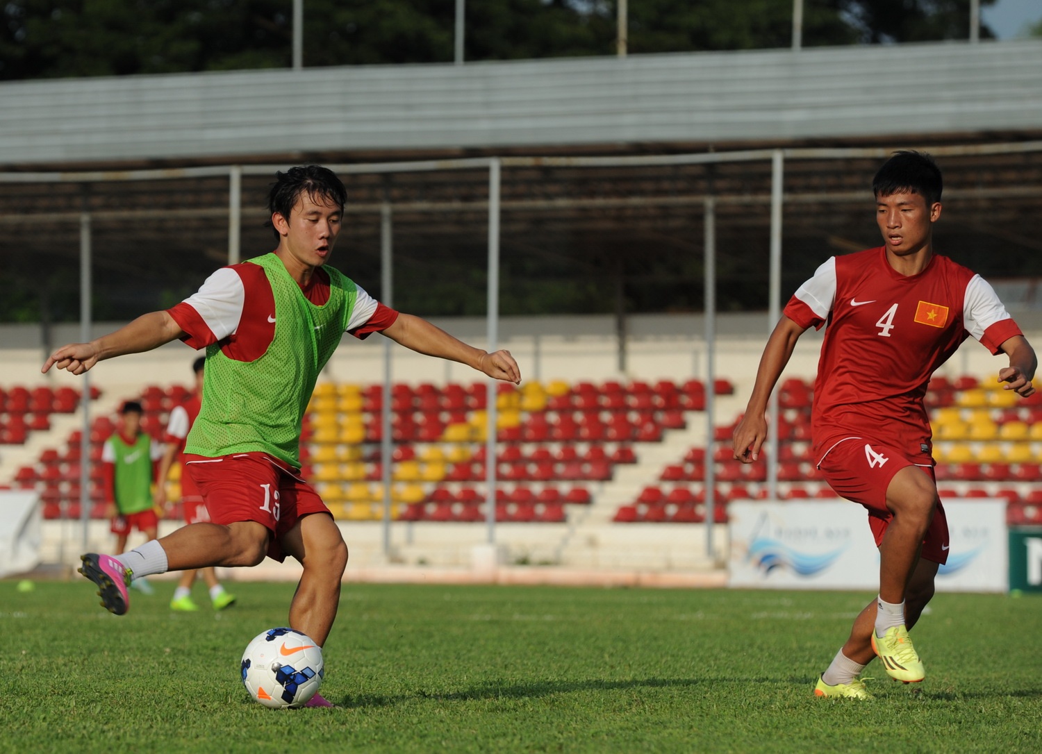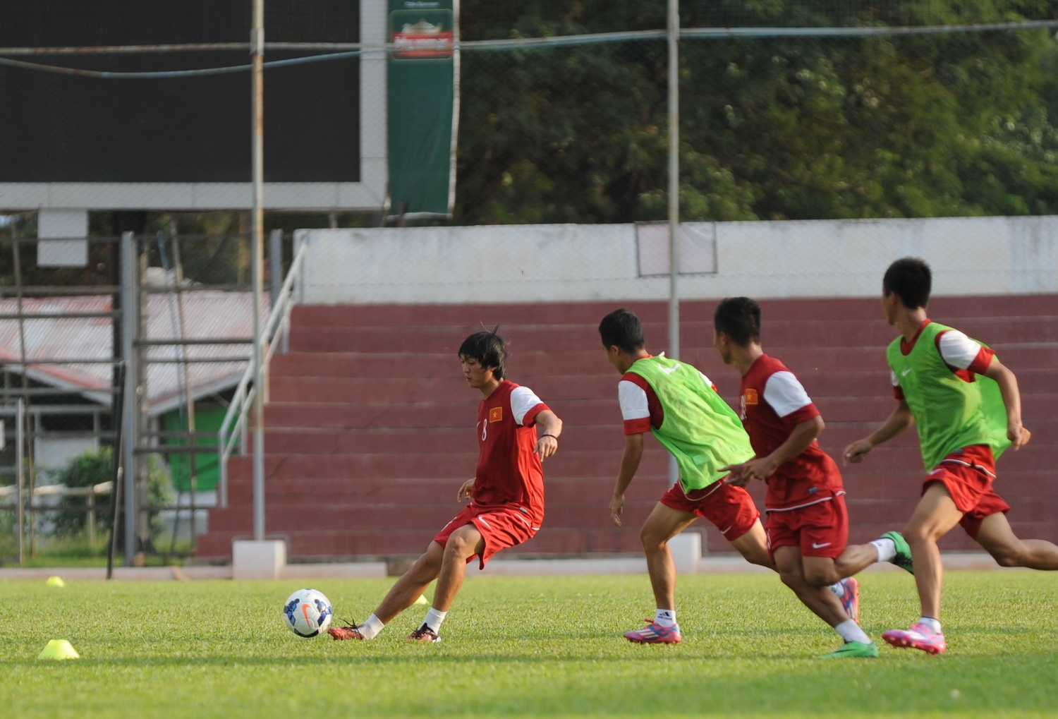 | Buổi tập chiều nay (7/10) HLV Graechen đã khớp đội hình chính để đá đối kháng với đội dự bị nhằm sẵn sàng cho trận đấu với U19 Hàn Quốc. Các cầu thủ U19 Việt Nam phải nỗ lực tập luyện dưới thời tiết nắng nóng và oi bức tại Myanmar. Tiền vệ Hồng Duy (số 7) đã có thể nuốt trọn giáo án trong buổi tập hôm nay và sẵn sàng ra sân ngay từ đầu nếu được HLV Graechen tin dùng. |
