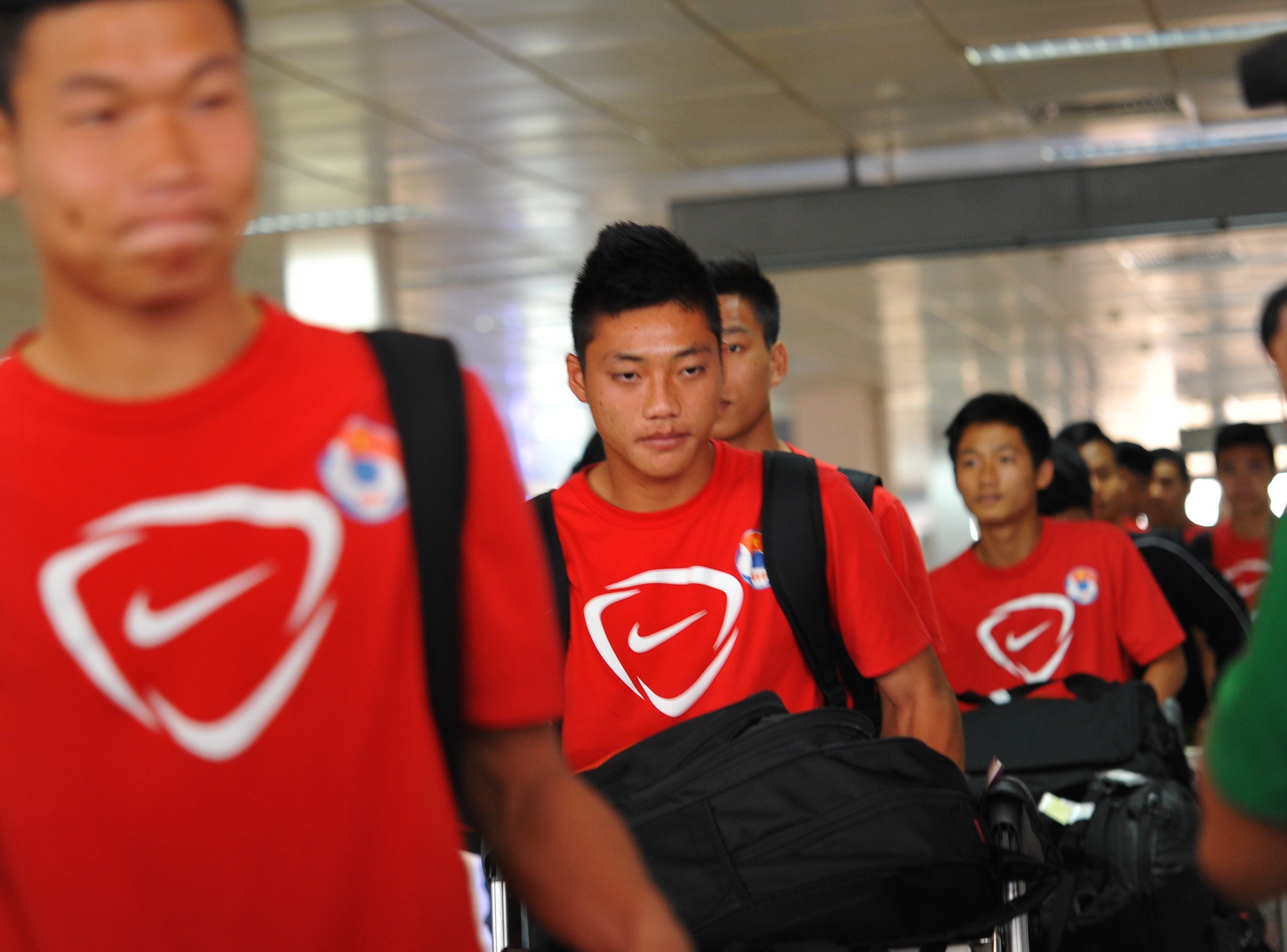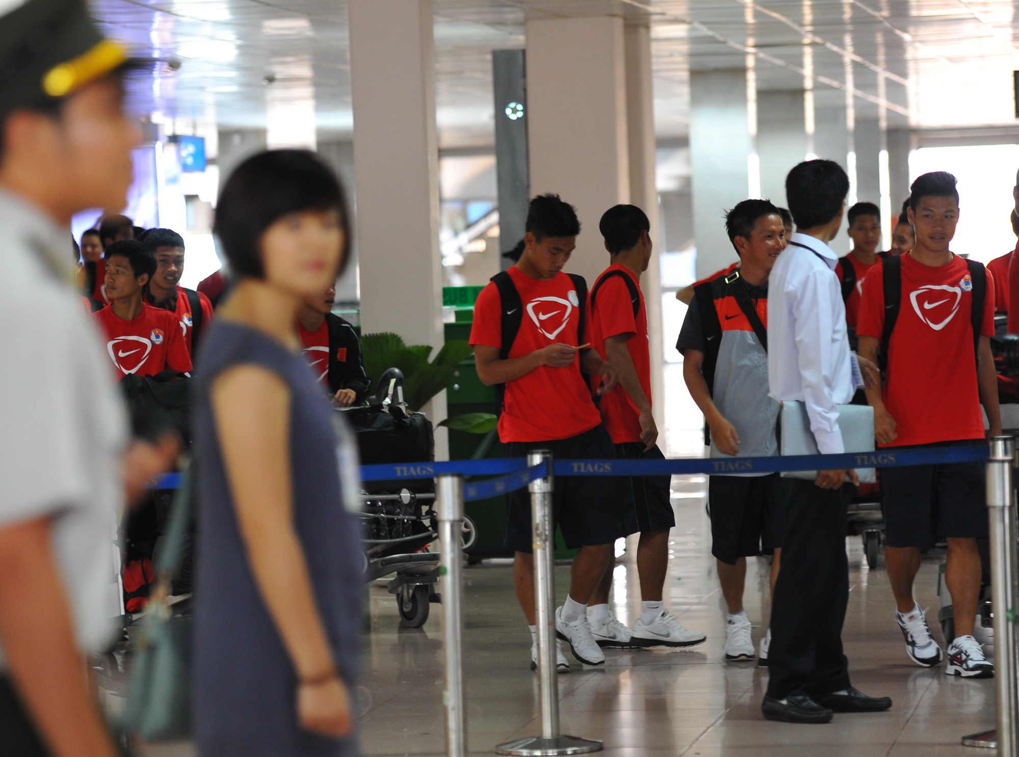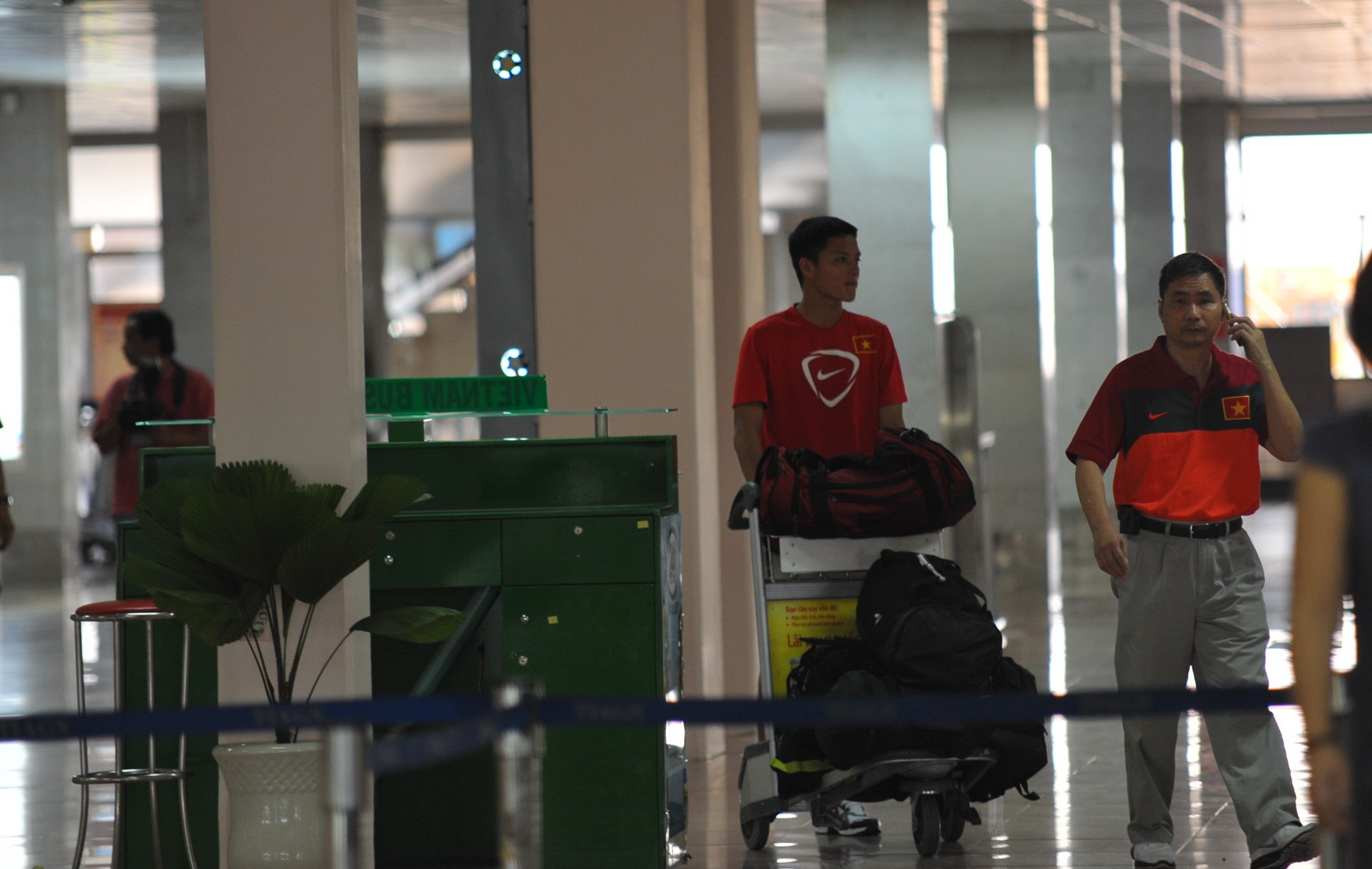 | Ông Dương Nghiệp Khôi dẫn đầu đoàn các cầu thủ U19 Việt Nam đi ra khỏi khu vực kiểm soát an ninh. |