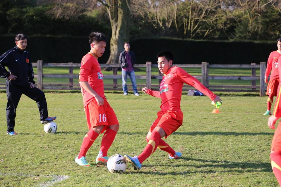 Đức Huy (phải) cảm lạnh nhẹ nhưng hiện tại sức khỏe của tiền vệ số 15 đã kịp bình phục và sẵn sàng cho trận đấu với U19 AFC Wimbledon.