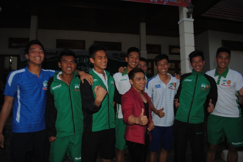 | Trông Phạm Văn Mách thật nhỏ bé khi đứng cạnh những thủ môn được đào tạo tại trung tâm thể thao Hàm Rồng. |