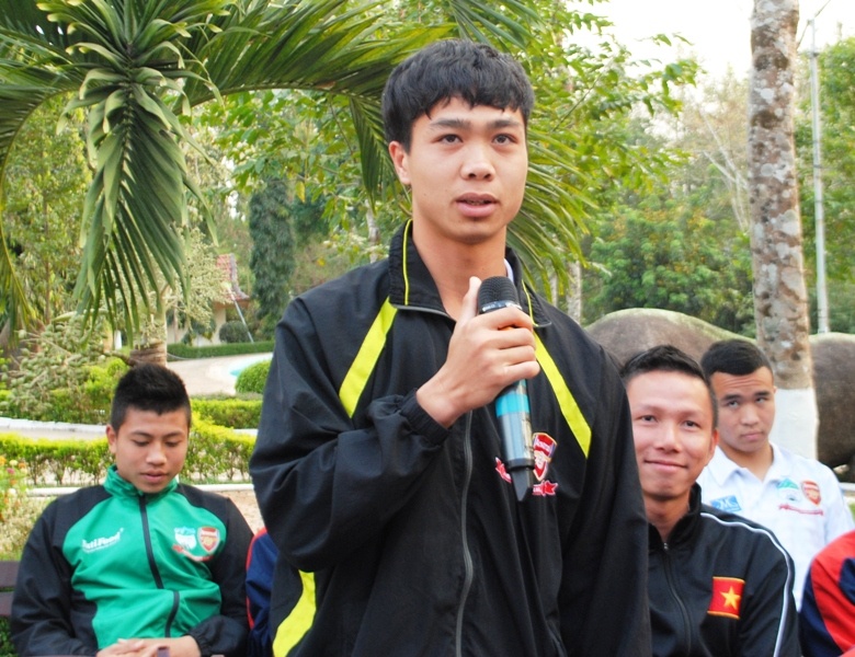 | Nguyễn Công Phượng rất chăm chú nghe Mách tư vấn. |