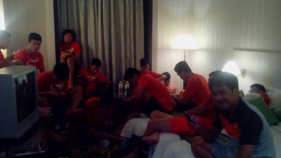 | Các cầu thủ U19 Việt Nam tập trung lại một phòng để cùng sử dụng Wi-Fi. |