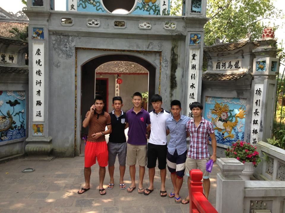 | U19 Việt Nam chụp ảnh lưu niệm trước cửa đền Ngọc Sơn. |