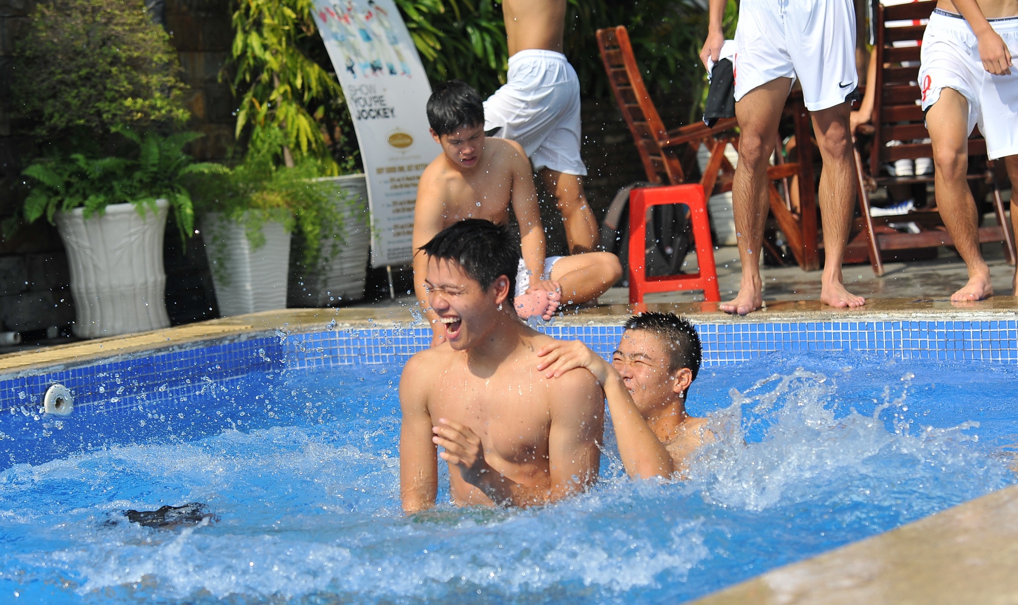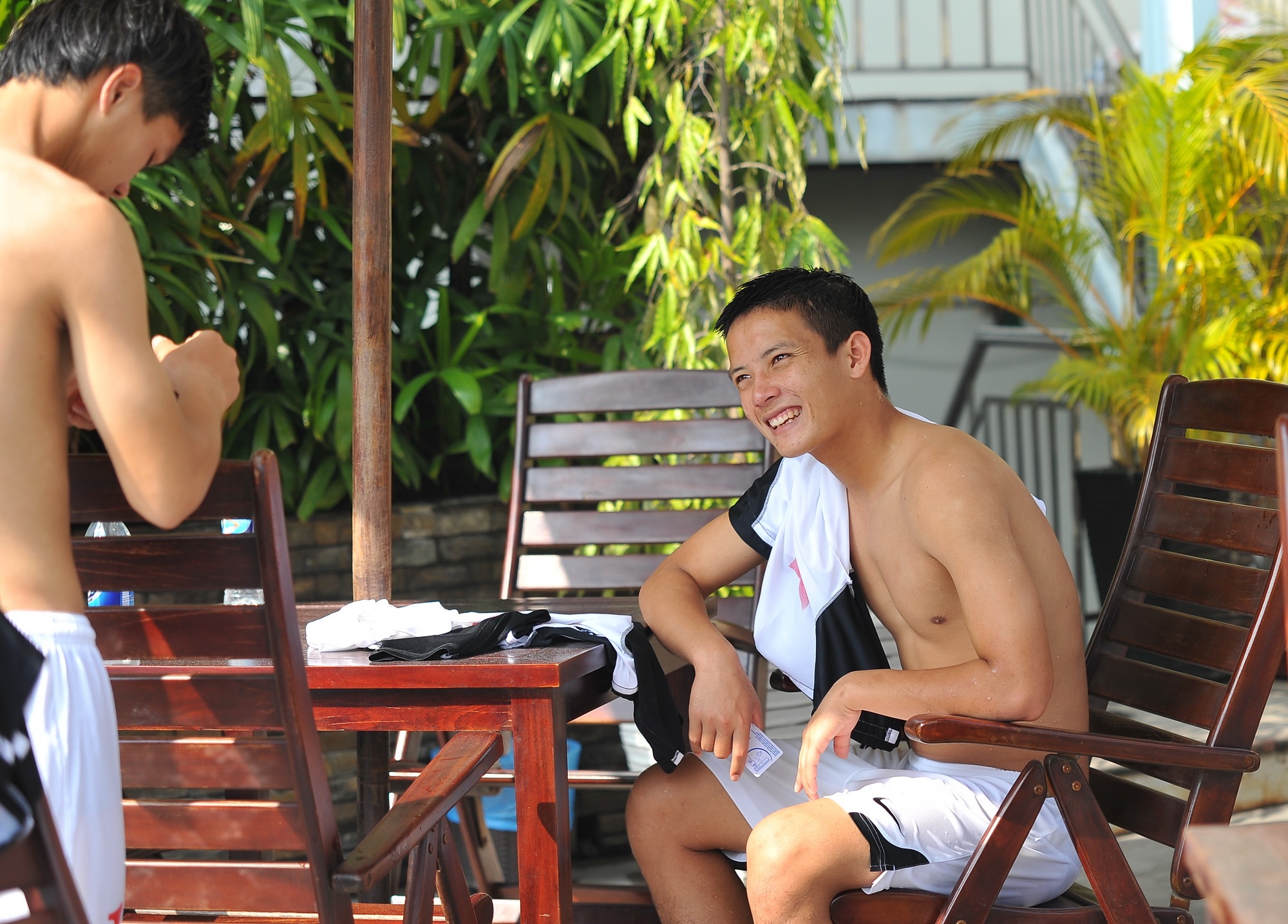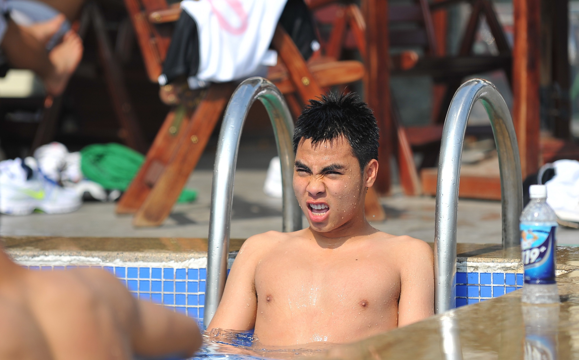 | Các cầu thủ thả lỏng bên bể bơi khoảng 1 tiếng, sau đó về lại phòng nghỉ ngơi để chuẩn bị cho buổi tập vào lúc 16h30 chiều nay. |