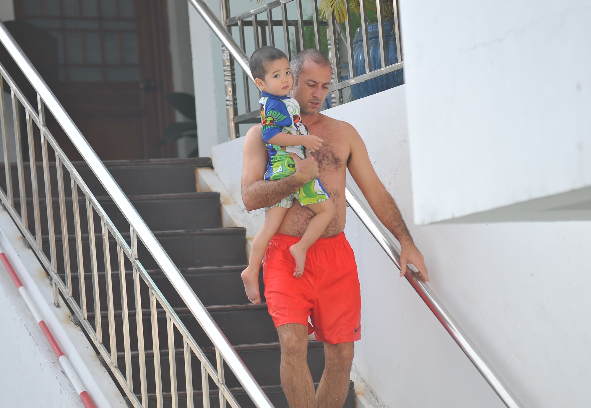 | HLV Guillaume cũng dẫn con nhỏ tới bể bơi để vui đùa. |