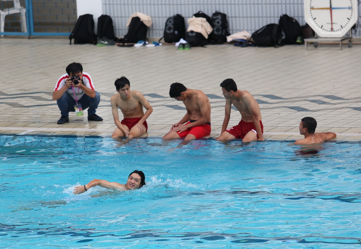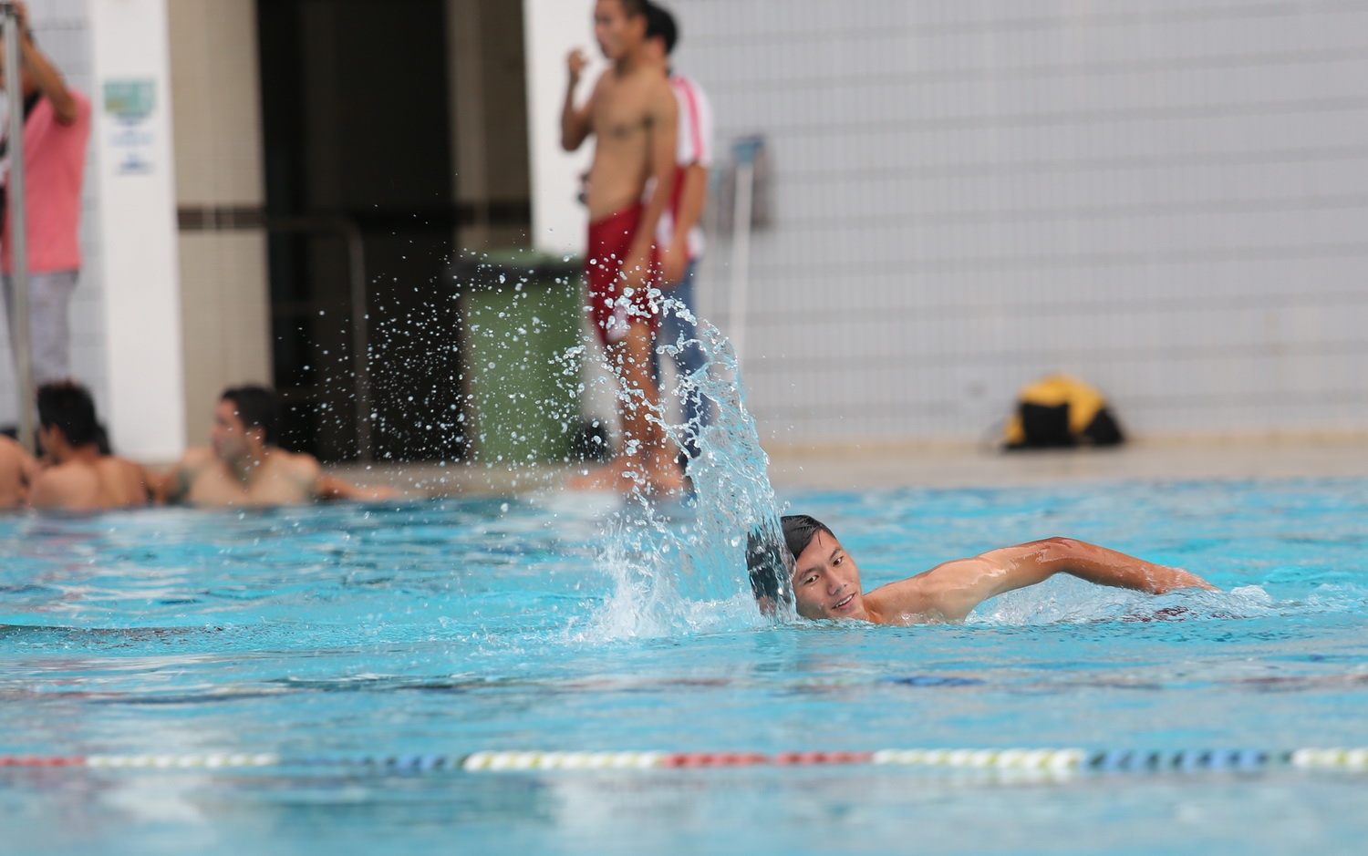 | Kết thúc buổi đi chơi, toàn đội di chuyển tới bể bơi thuộc Khu liên hợp thể thao Hassanal Bollkiah để thư giãn dưới nước. |