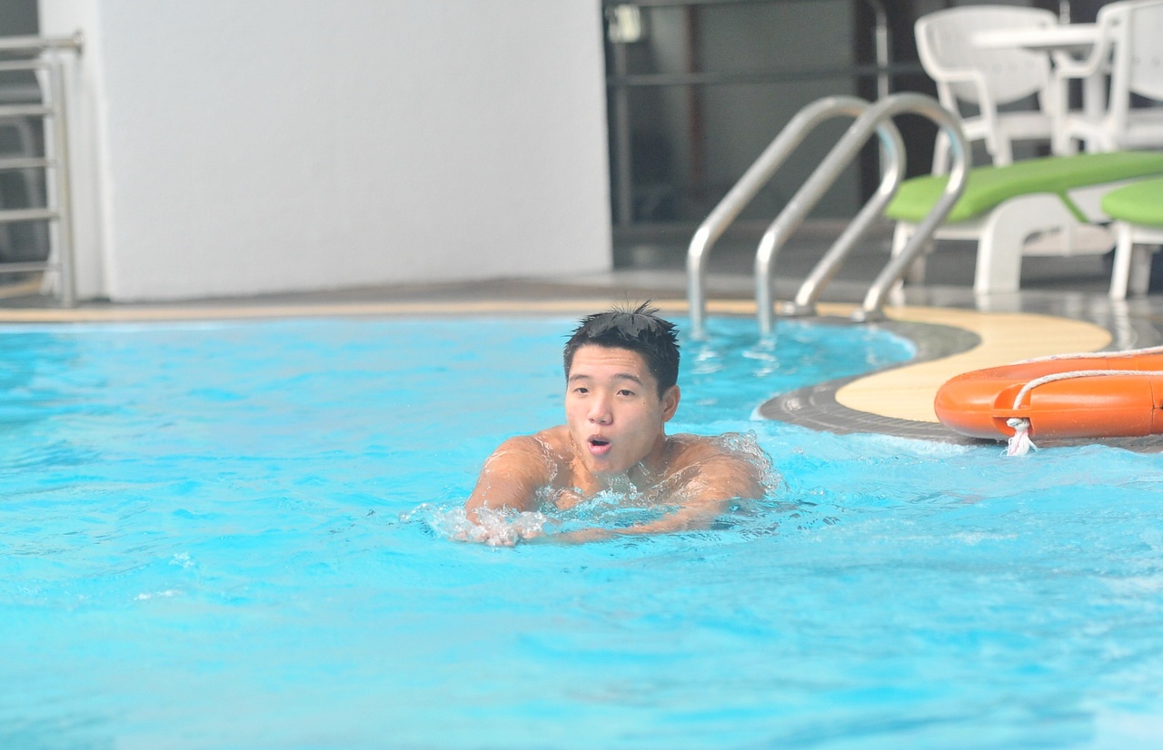 | Thủ môn Phi Long rất thích bơi nên anh nán lại bể bơi sau cùng dù cả đội đã về nghỉ. Từ chiều nay tới trước trận đấu lúc 16h00 (giờ Việt Nam) gặp U19 Hồng Kông ngày mai, toàn đội sẽ chỉ nghỉ ngơi tại phòng. Theo đánh giá của HLV Grachen, U19 Hồng Kông sẽ là đối thủ dễ chơi hơn với U19 Việt Nam so với U19 Đài Loan. |