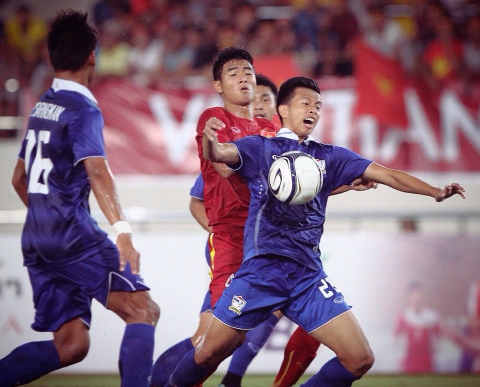 Một phóng viên Thái Lan tác nghiệp ở giải U19 Đông Nam Á tiết lộ, Liên đoàn bóng đá nước này treo thưởng 1 triệu bath (gần 650 triệu đồng Việt Nam) nếu các cầu thủ của họ đánh bại U19 Việt Nam ở trận chung kết. Nhận định trước trận đấu, nhóm phóng viên Thái Lan cho rằng cơ hội giành chiến thắng của 2 đội là 50-50, có thể trận đấu sẽ kéo dài tới loạt sút luân lưu để xác định đội lên ngôi vô địch. Yếu tố khác biệt của đội bóng xứ chùa vàng tại giải U19 Đông Nam Á năm nay là đội duy nhất có huấn luyện viên thể lực chuyên biệt. Ảnh: Tùng Lê.