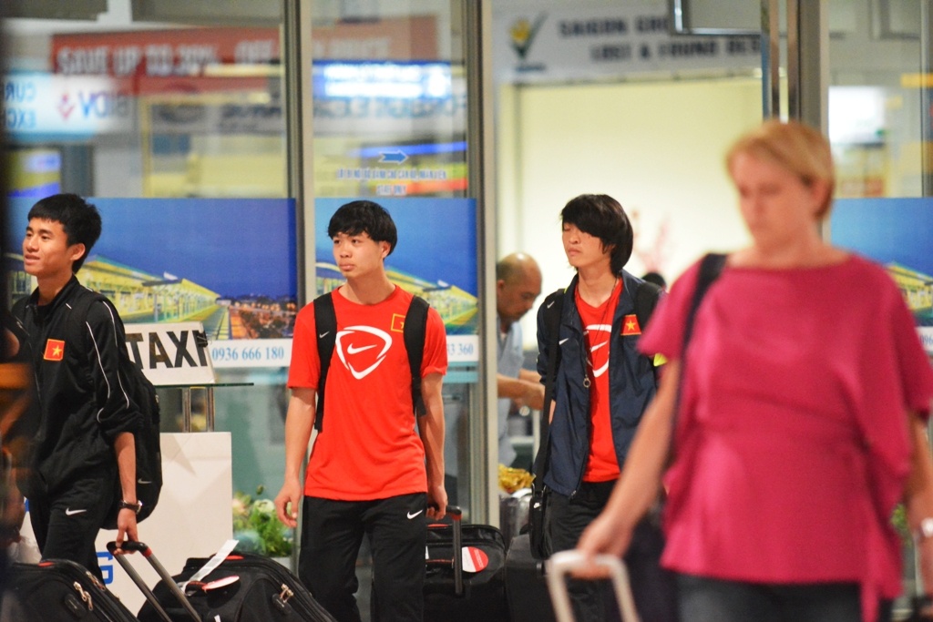 | Đúng 19h30, các cầu thủ U19 Việt Nam bước ra từ nhà ga quốc tế sân bay Tân Sơn Nhất. Họ trải qua một chuyến bay dài từ Bỉ, quá cảnh qua UAE, Bangkok trước khi về Tân Sơn Nhất. Một nhóm cầu thủ khác bay về Hà Nội. |