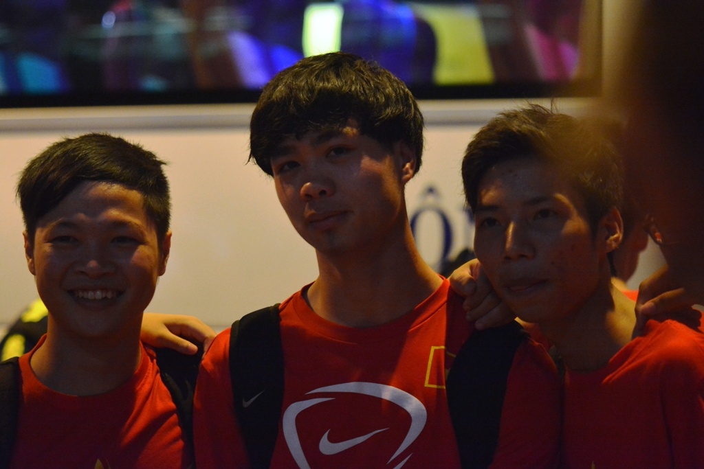| Công Phượng là cầu thủ U19 Việt Nam được săn đón nhất. Dù rất mệt nhưng anh vẫn nhiệt tình chụp hình cùng người hâm mộ. |