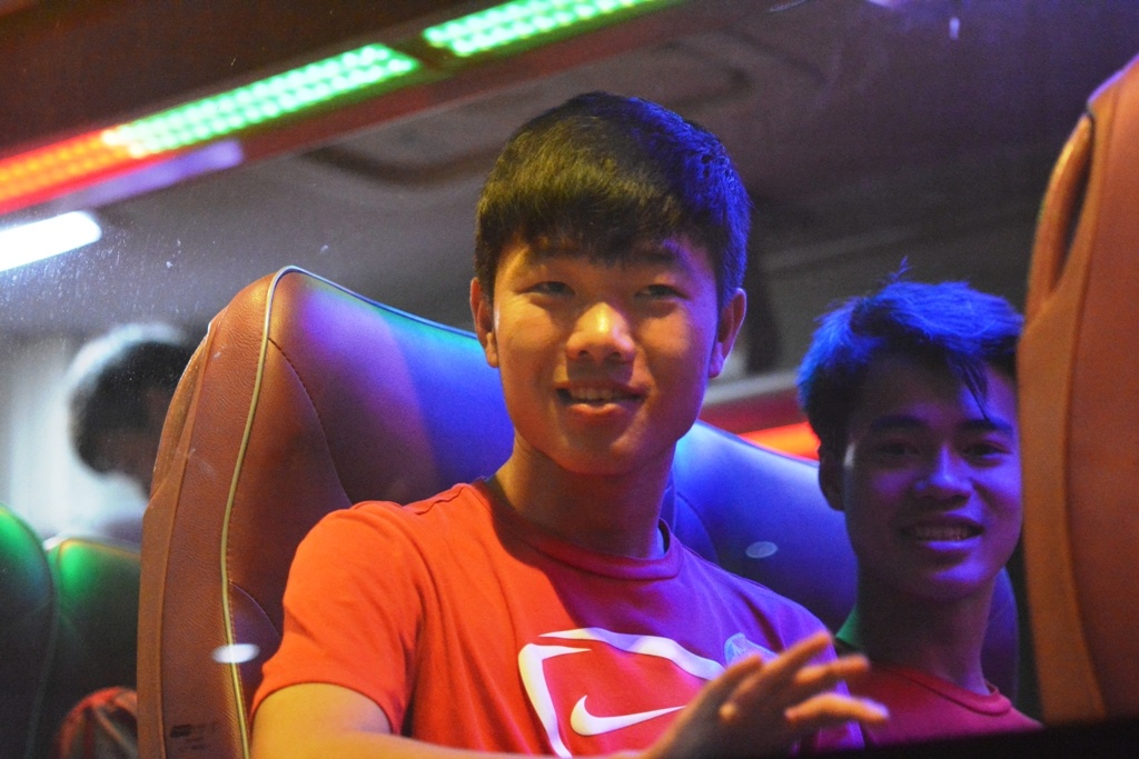 | Xuân Trường, Văn Toàn cười rất tươi khi lên xe đến khách sạn lưu trú. Theo kế hoạch cuối tháng 5 tới, các cầu thủ U19 Việt Nam sẽ bắt đầu tập trở lại và đến đầu tháng 6 tập trung để đi Nhật Bản tập huấn. |