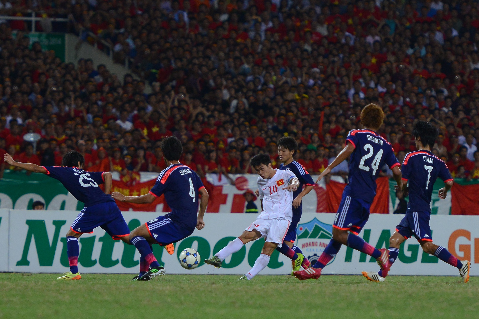 | Mọi đường tấn công của U19 Việt Nam đều bị dội ngược trở lại trước khi tìm đến khung thành của Kousuke. |