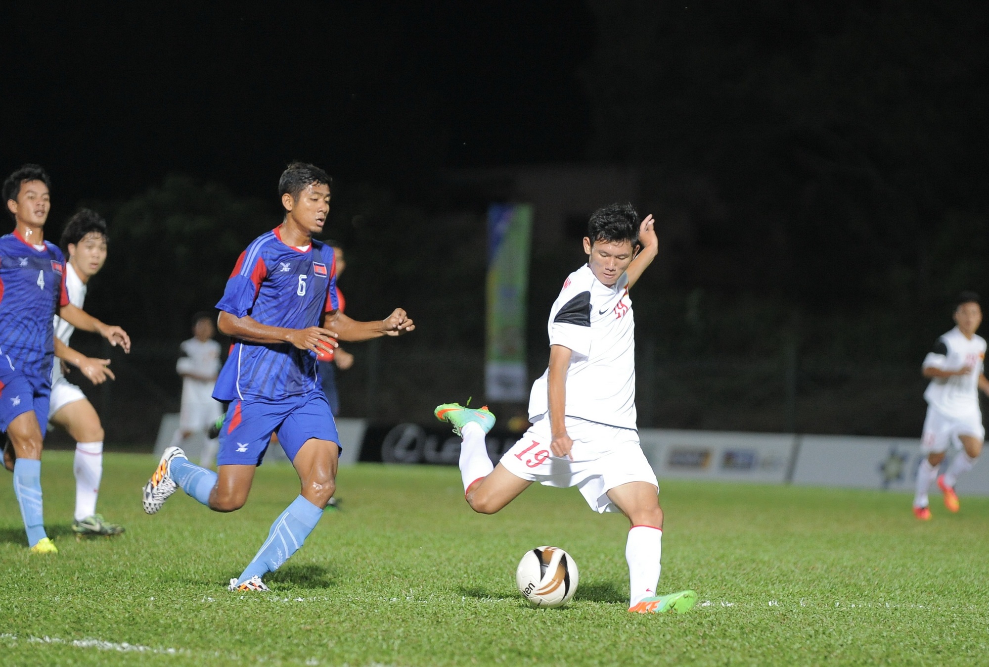 | Khoảng 20 phút đầu trận, các cầu thủ U19 Việt Nam thi đấu khá căng cứng dưới áp lực buộc phải thắng. Trong khi đó U21 Campuchia bung sức chơi áp sát để hạn chế lối chơi kỹ thuật của các cầu thủ trẻ. |