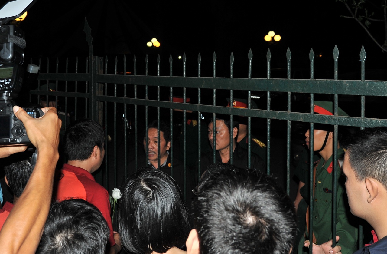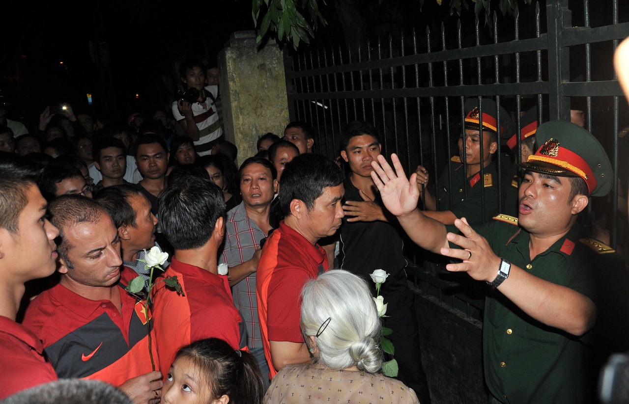 | Ông Dương Nghiệp Khôi, trưởng đoàn U19 Việt Nam xin phép được vào viếng Đại tướng lúc 23h15 đêm nhưng người nhà Đại tướng đã xin lỗi vì không thể tự ý thay đổi quyết định ngừng thăm viếng. |
