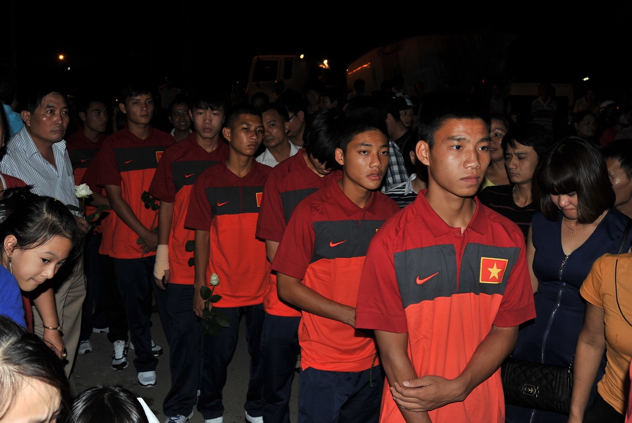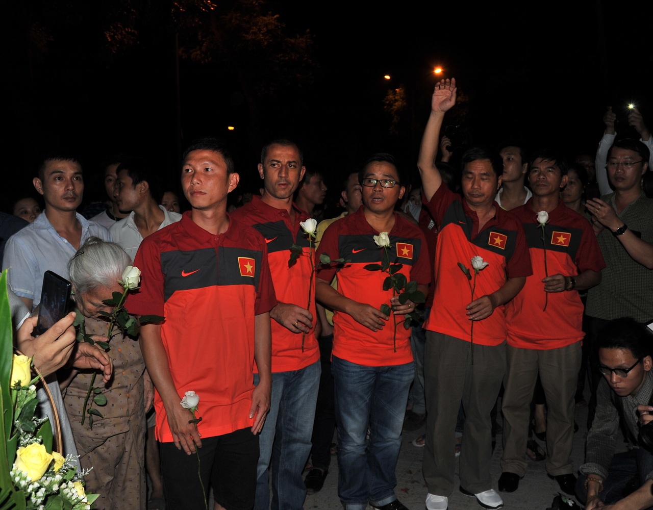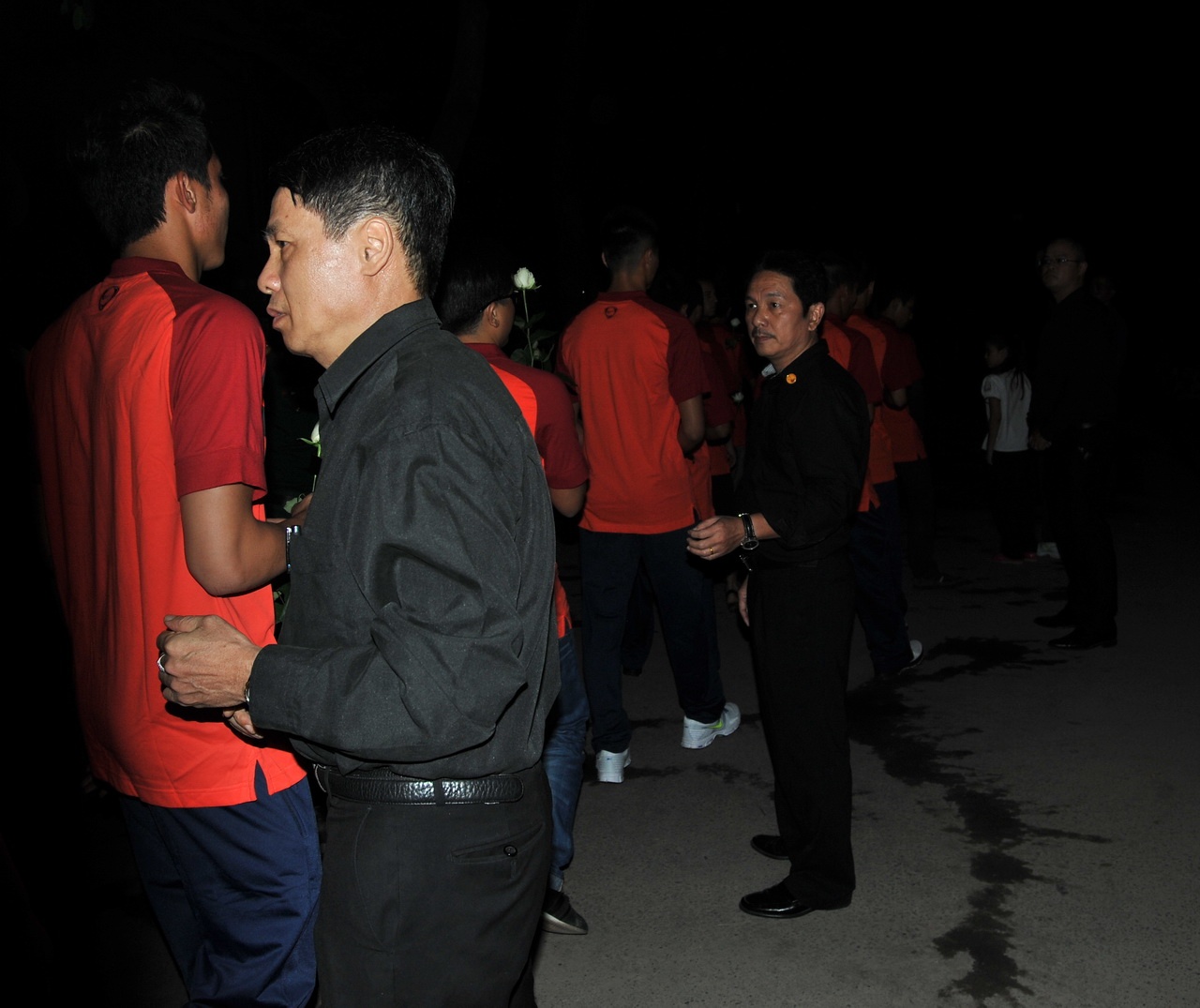 | Cảm kích với sự thành kính của U19 Việt Nam, người nhà Đại tướng đã xin phép đặc cách cho các cầu thủ trẻ vào báo công với Đại tướng dù đồng hồ đã điểm 23h30 đêm. |