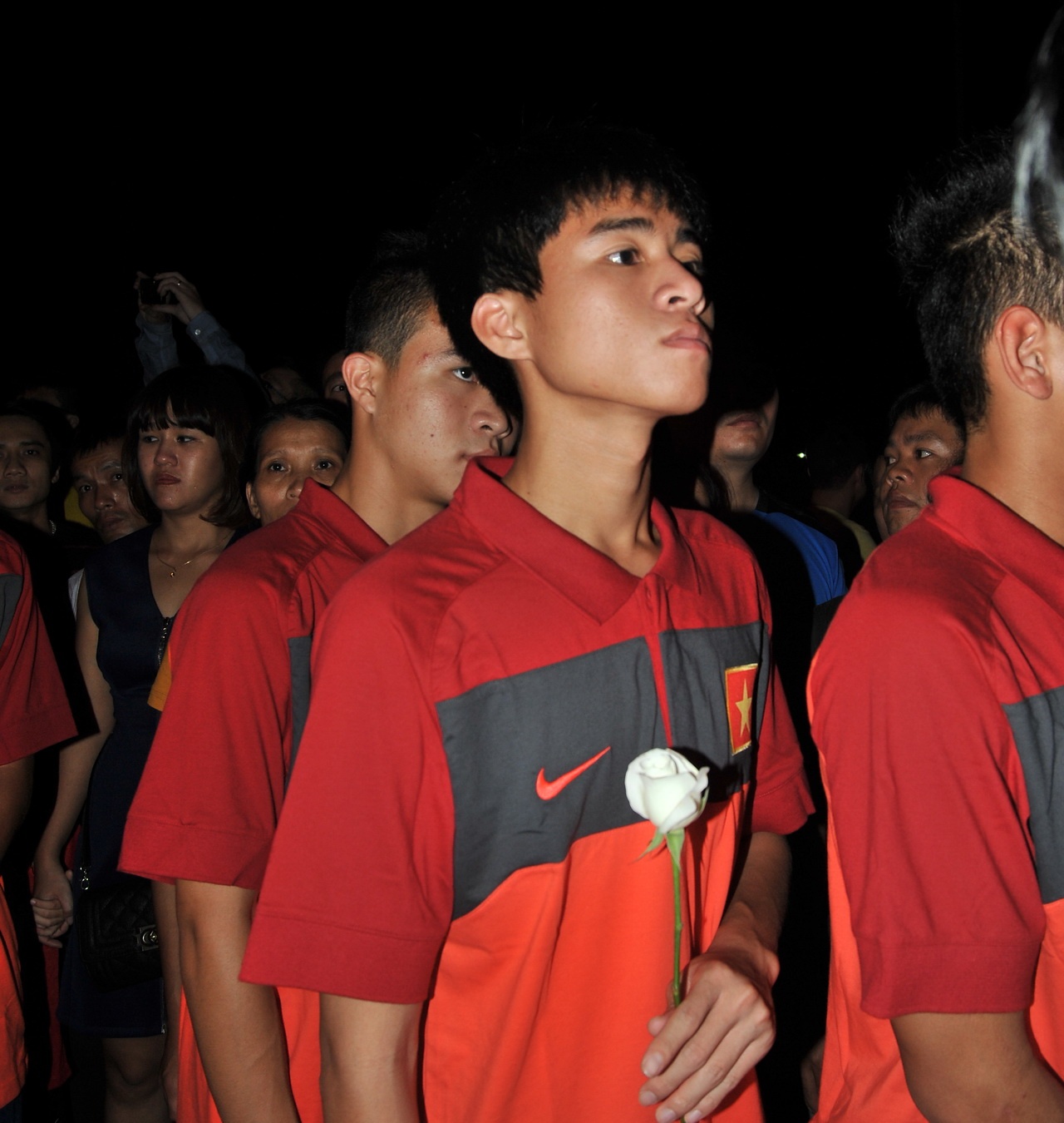 | Cầu thủ trẻ mong ngóng được vào thắp nén nhang cho cố Đại tướng. |