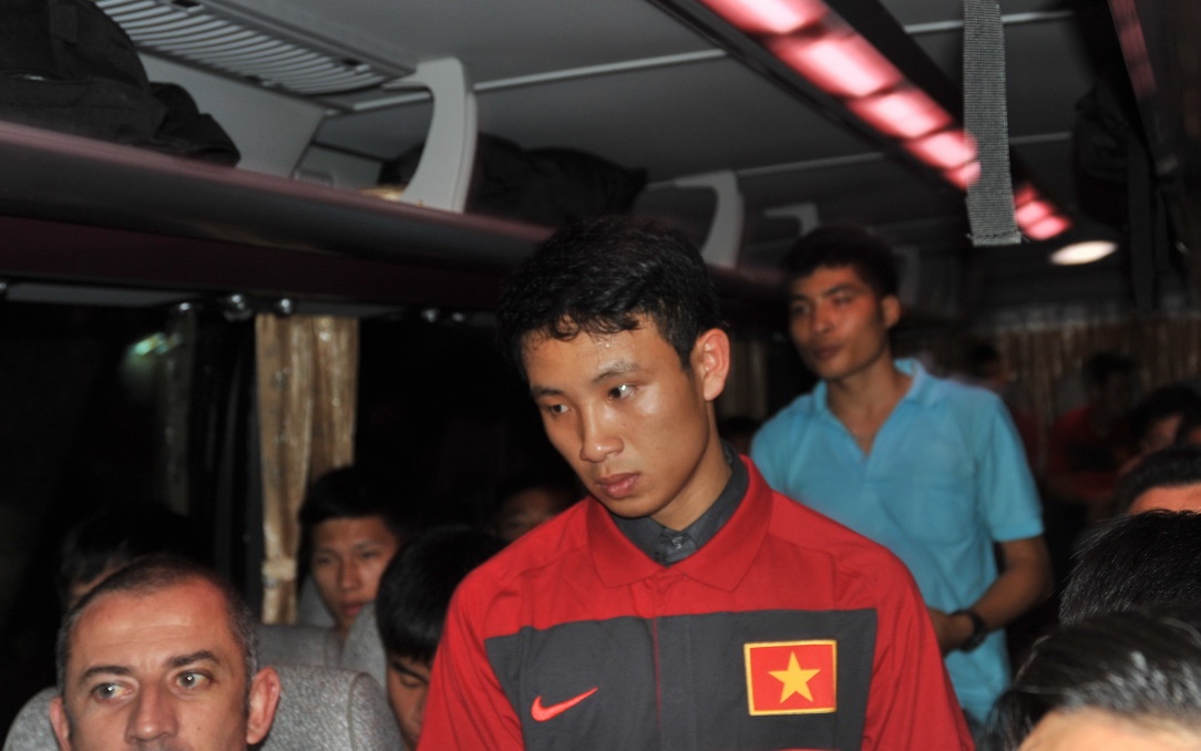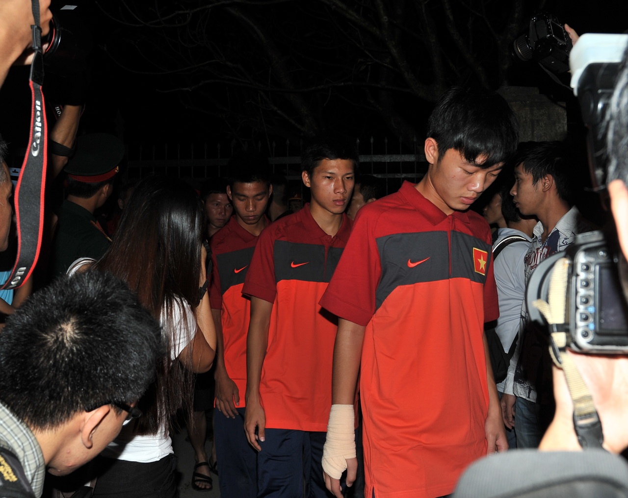 | 23h30 đêm, dòng người đứng rất đông đã nhường đường cho U19 Việt Nam đi vào cổng ngôi biệt thự số 30 Hoàng Diệu. |