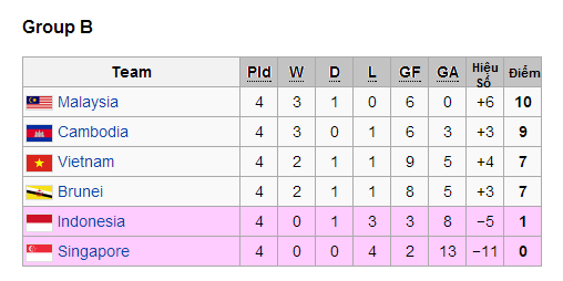 | Cục diện bảng B trước lượt trận cuối cùng. Cả 4 đội Malaysia, Campuchia, Việt Nam và Brunei đều có cơ hội đi tiếp vào vòng bán kết. |