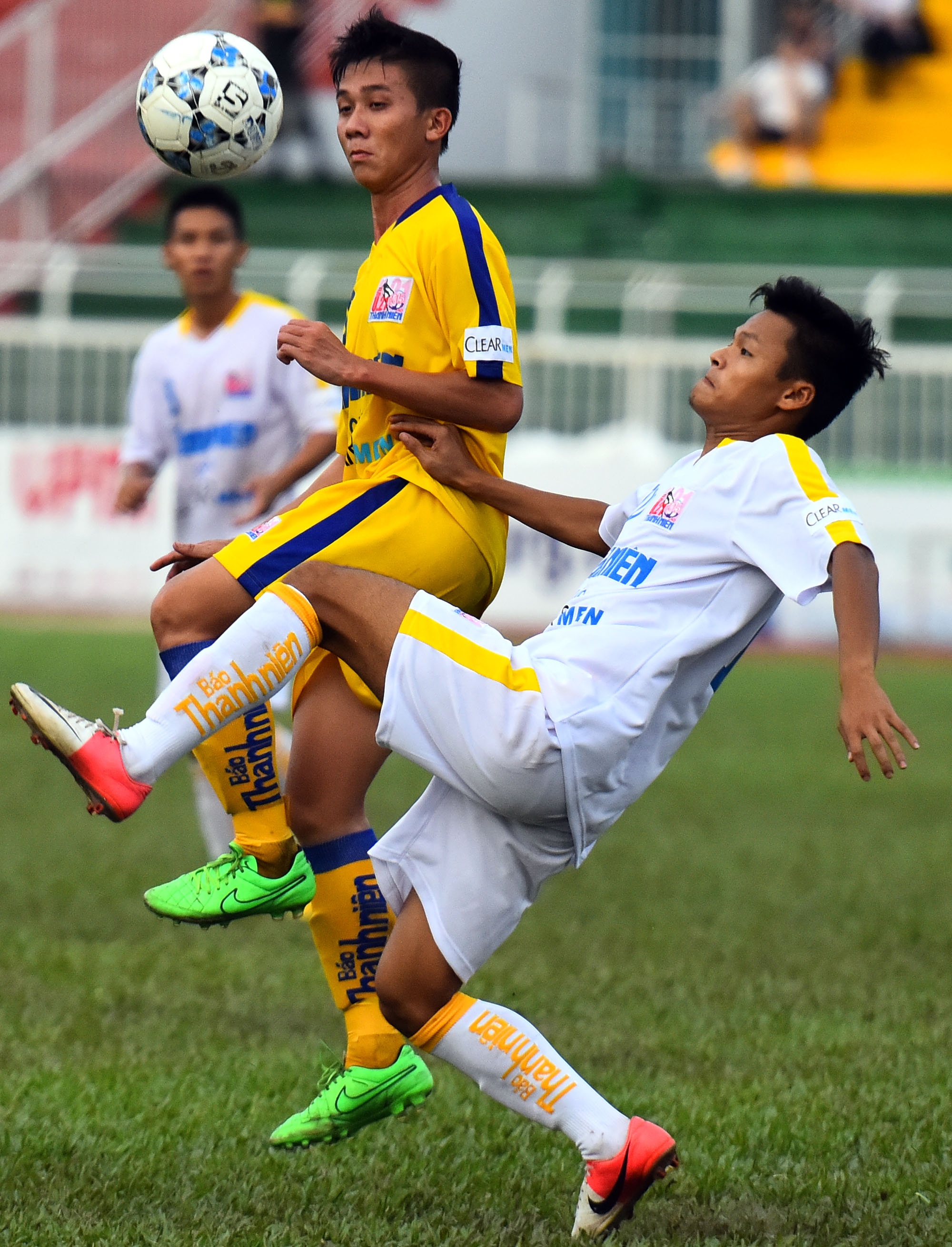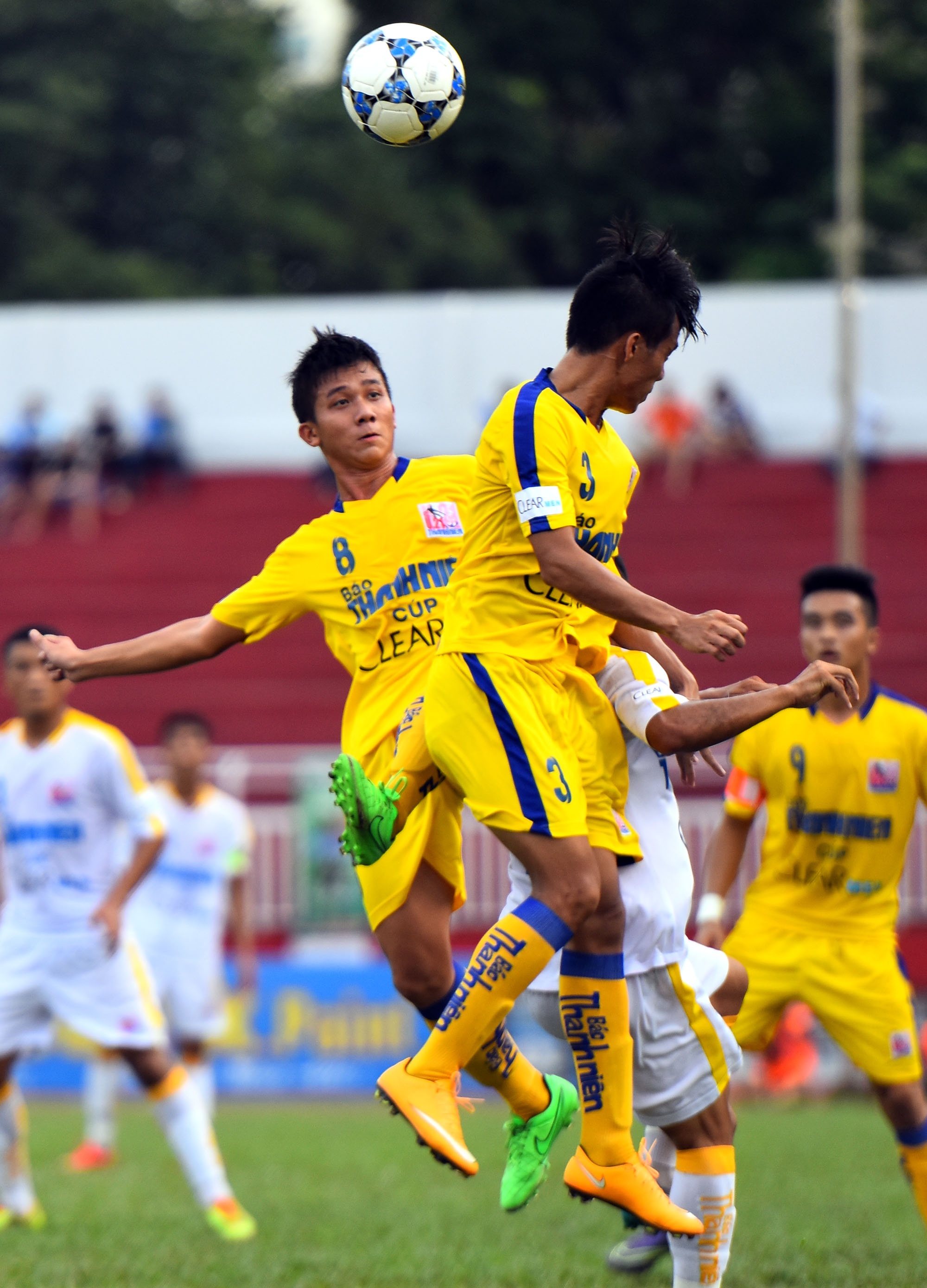 | Hiệp 1 trận đấu khép lại mà không bên nào ghi được bàn thắng, bước sang những phút đầu hiệp 2 tiền đạo Văn Thành bật cao đánh đầu sau tình huống bóng chết giúp U21 Hà Nội T&T vươn lên dẫn trước. |