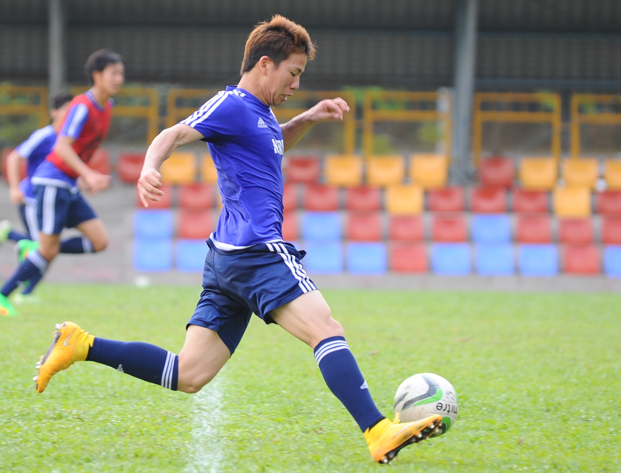 | Cuối buổi tập, HLV Makoto Teguramori cho các cầu thủ chơi đùa với bóng để duy trì cảm giác. |