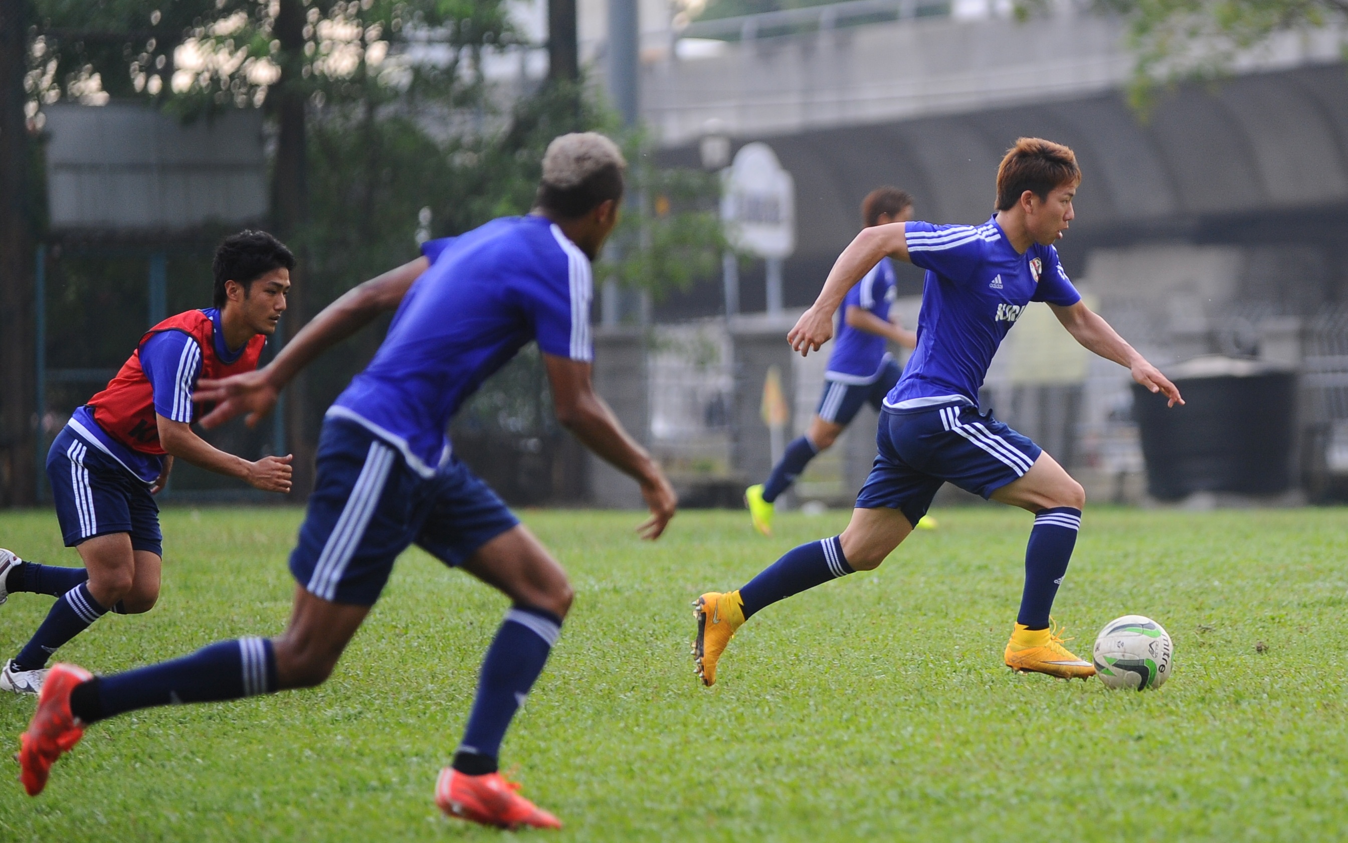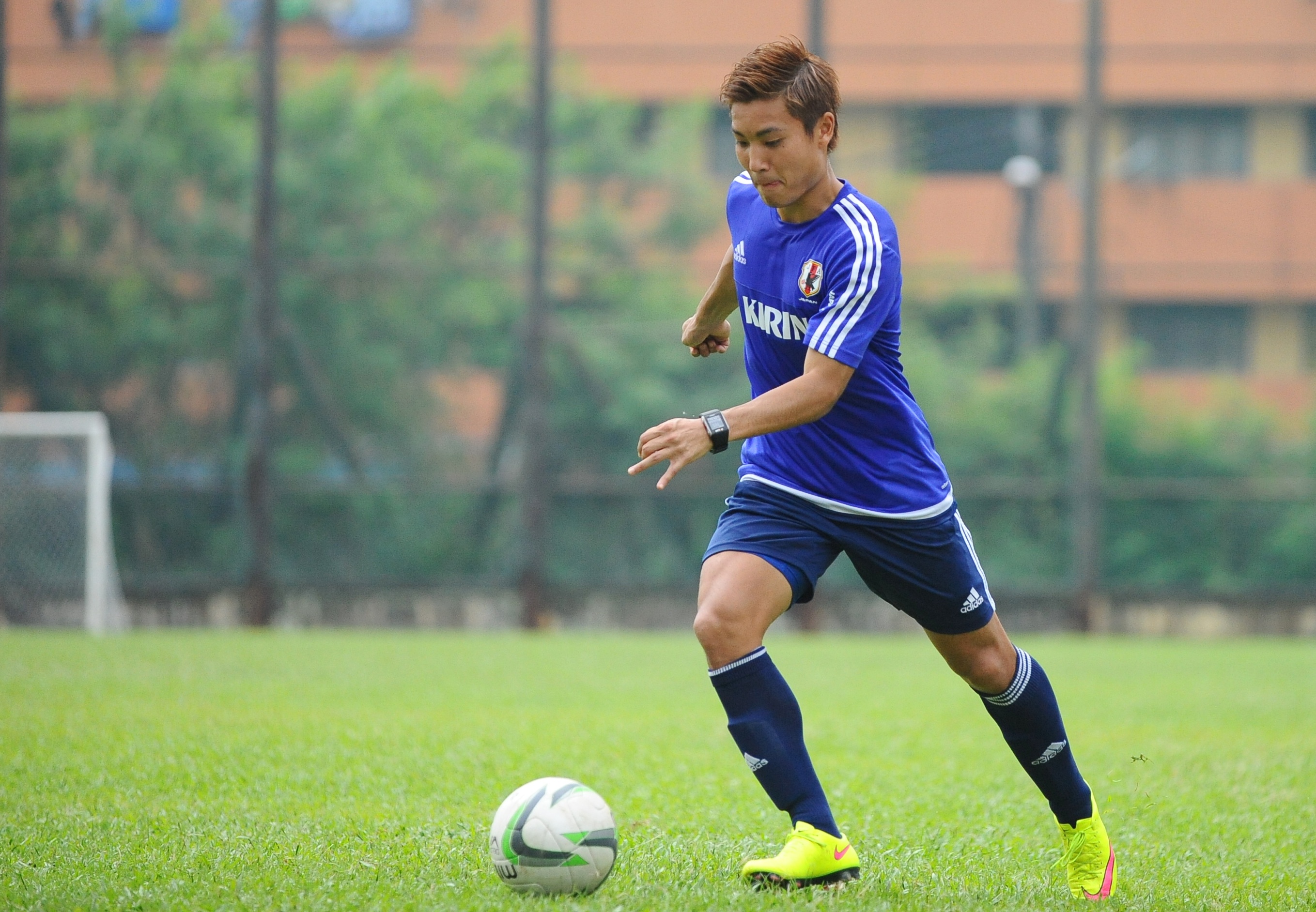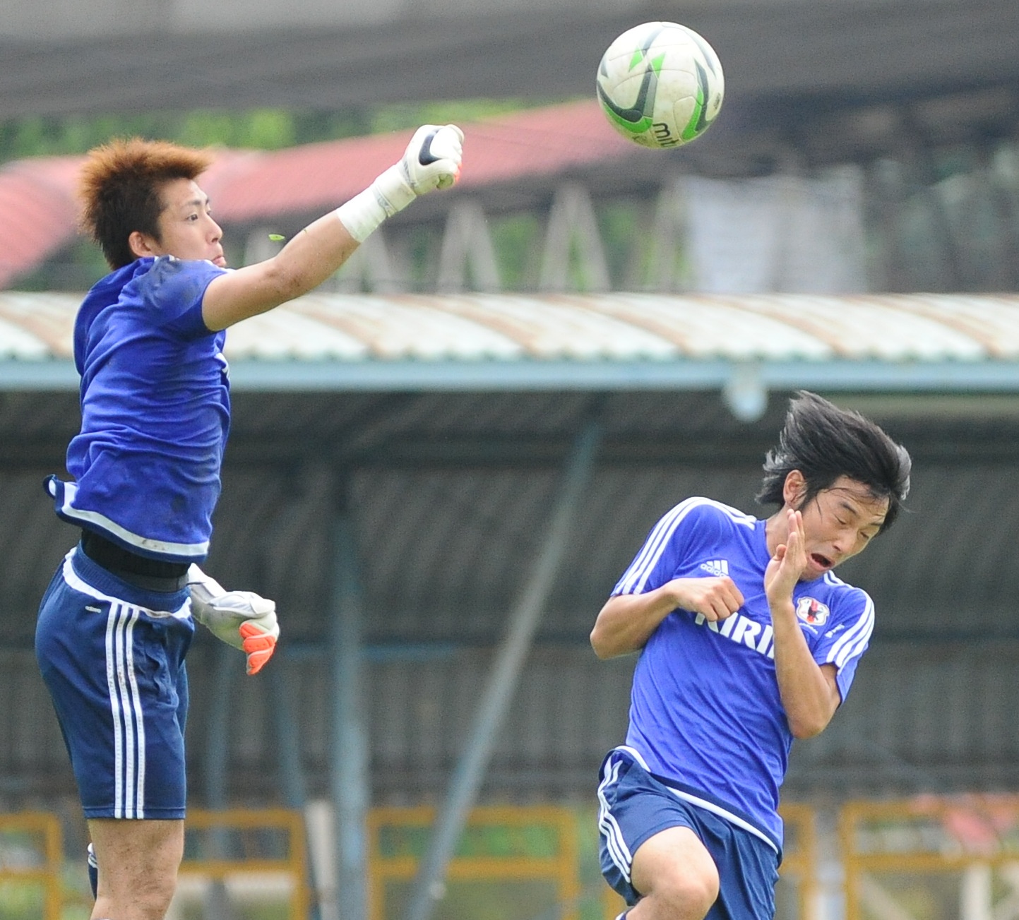 | U23 Nhật Bản tập dứt điểm dưới cái nắng hơn 30 độ C tại Selangor, Malaysia. |