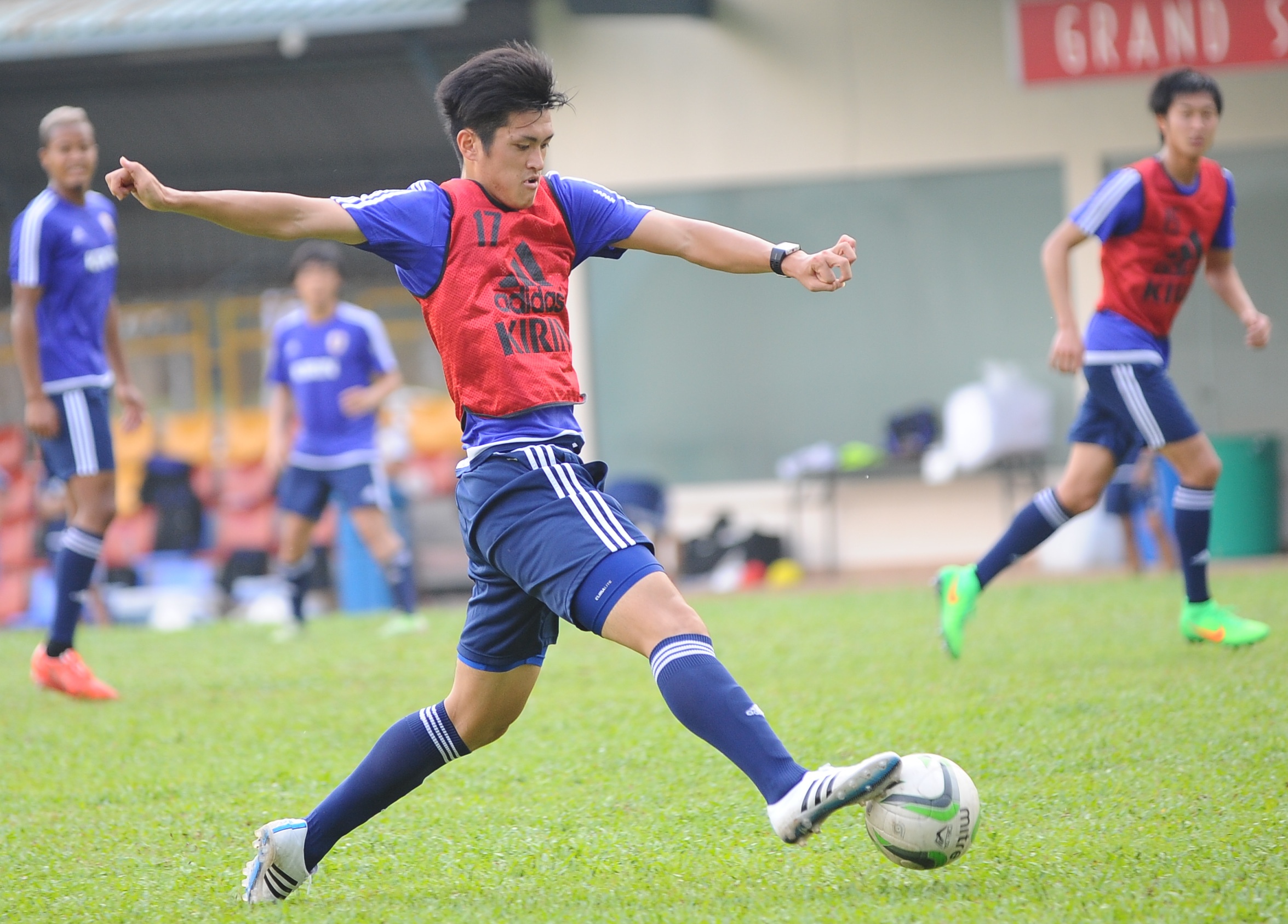| Tiền đạo Musashi Suzuki tích cực luyện dứt điểm khi anh chỉ ghi được 1 trong tổng số 7 bàn thắng của U23 Nhật Bản ở trận thắng U23 Macau. |