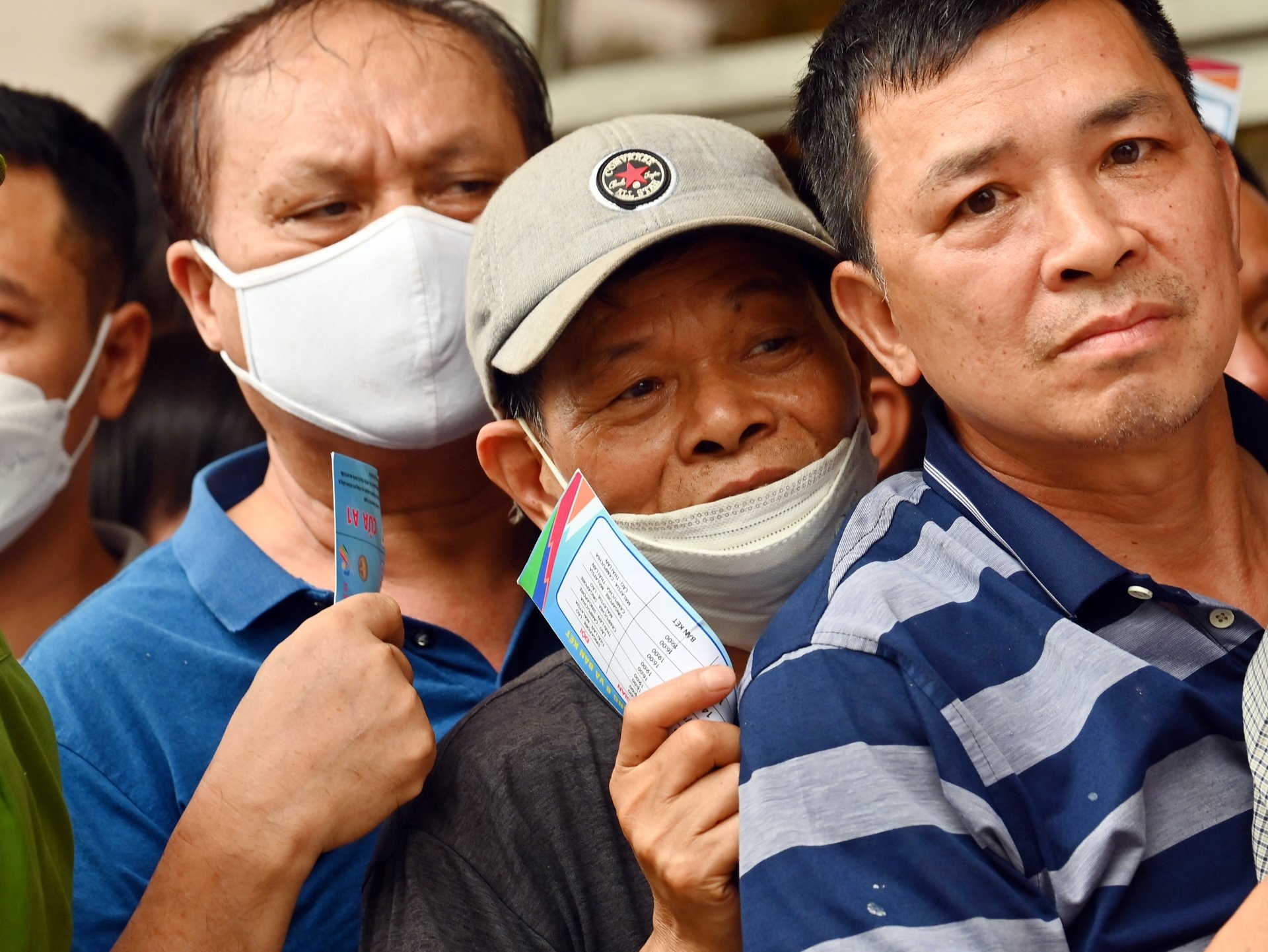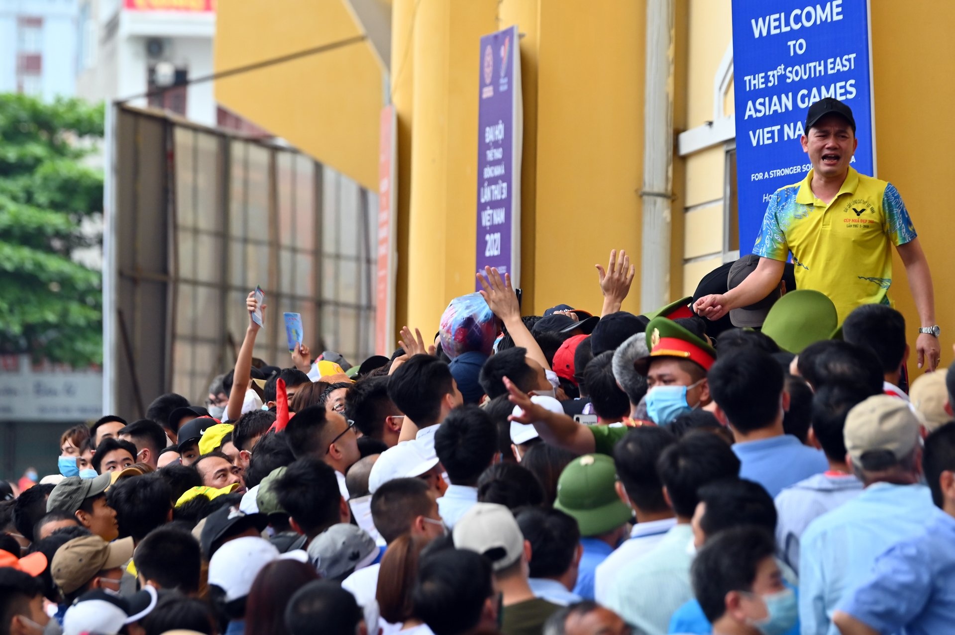 Nhiều CĐV có vé mời nhưng không thể vào sân. Lực lượng an ninh đã phải dựng hàng rào để yêu cầu người dân không chen lấn. Ảnh: Việt Linh.