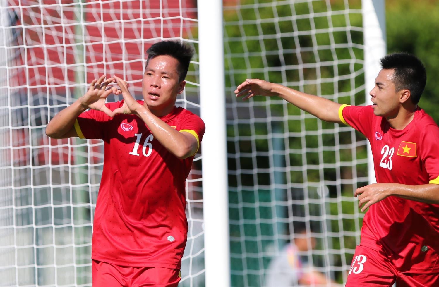 Thanh Bình ăn mừng sau khi mở tỷ số cho U23 Việt Nam. Ảnh: Tùng Lê.