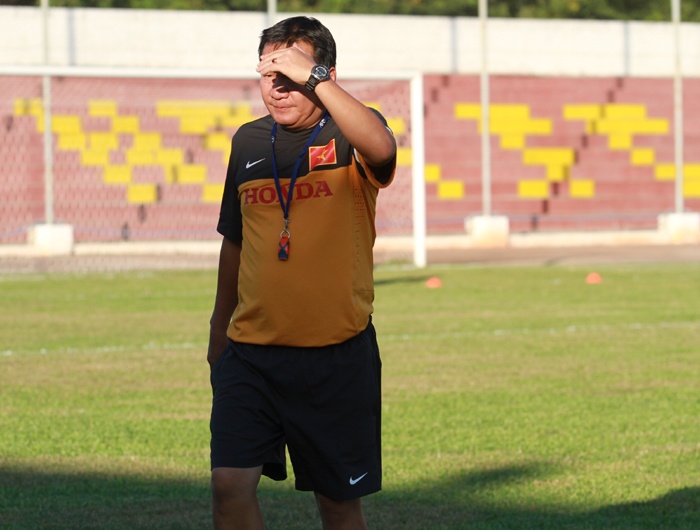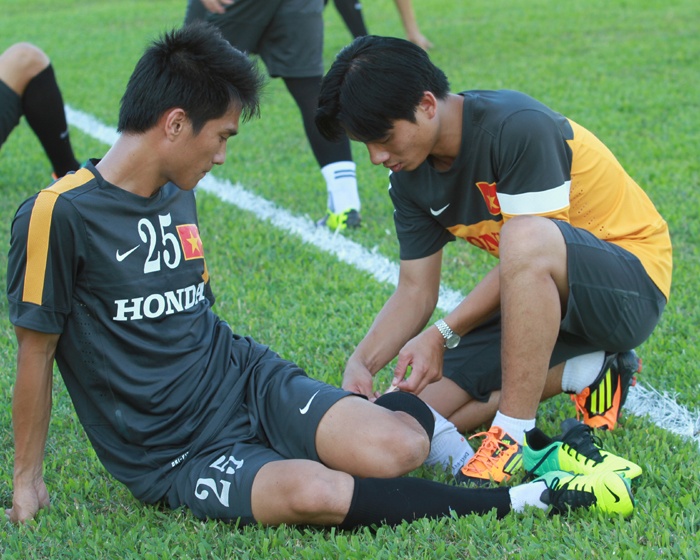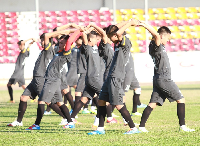 | Trong buổi tập đầu tiên của U23 Việt Nam trên đất Myanmar, các cầu thủ chơi khá nhiệt. HLV Hoàng Văn Phúc đã phải nhắc các học trò giảm nhiệt để tránh chấn thương. |