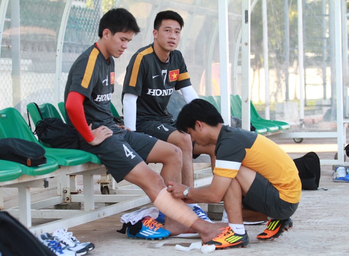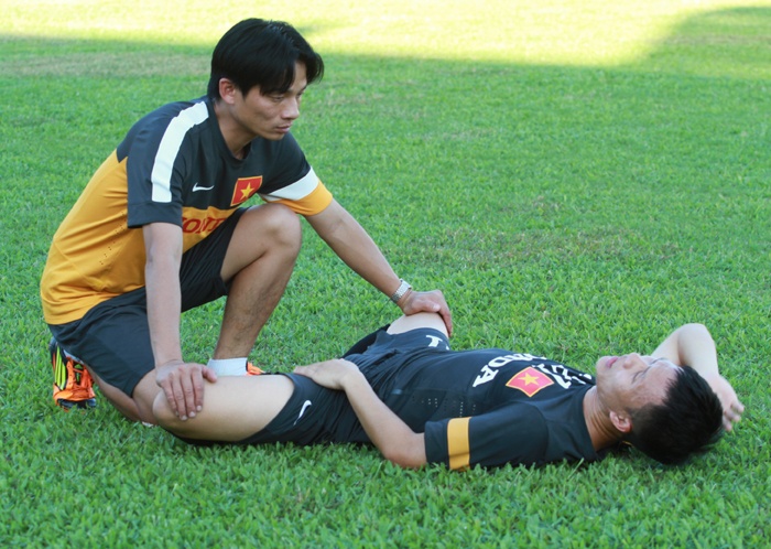 Thanh Hào cũng còn may mắn hơn đồng đội Huy Hùng. Số 7 của ĐT Việt Nam phải tập riêng và anh đang đứng trước nguy cơ sẽ không thể ra sân trong trận mở màn gặp Brunei vào ngày 8/12 tới.