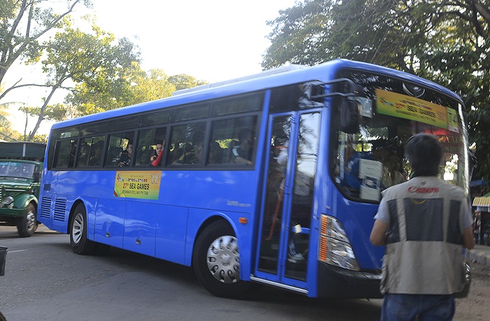 | Xe chở U23 Việt Nam đến sân của CLB Nay Pyi Taw chậm 20 phút so với kế hoạch. |