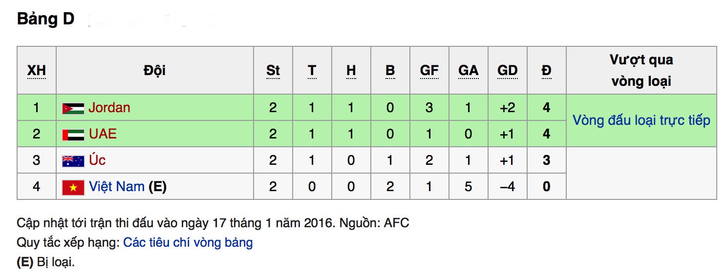 Điều này đồng nghĩa với việc thầy trò HLV Miura chính thức bị loại, bởi vòng bảng chỉ còn 1 lượt đấu nữa sẽ khép lại. U23 Việt Nam không còn cơ hội đuổi kịp nhóm dẫn đầu (đang có 4 điểm).