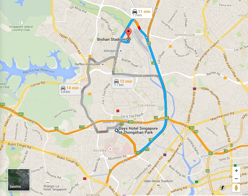 Từ khách sạn Days Hotel đến sân Bishan khoảng 7,3 km, mất 11 phút di chuyển bằng ôtô. |