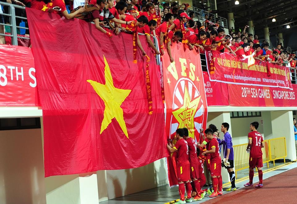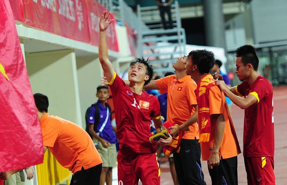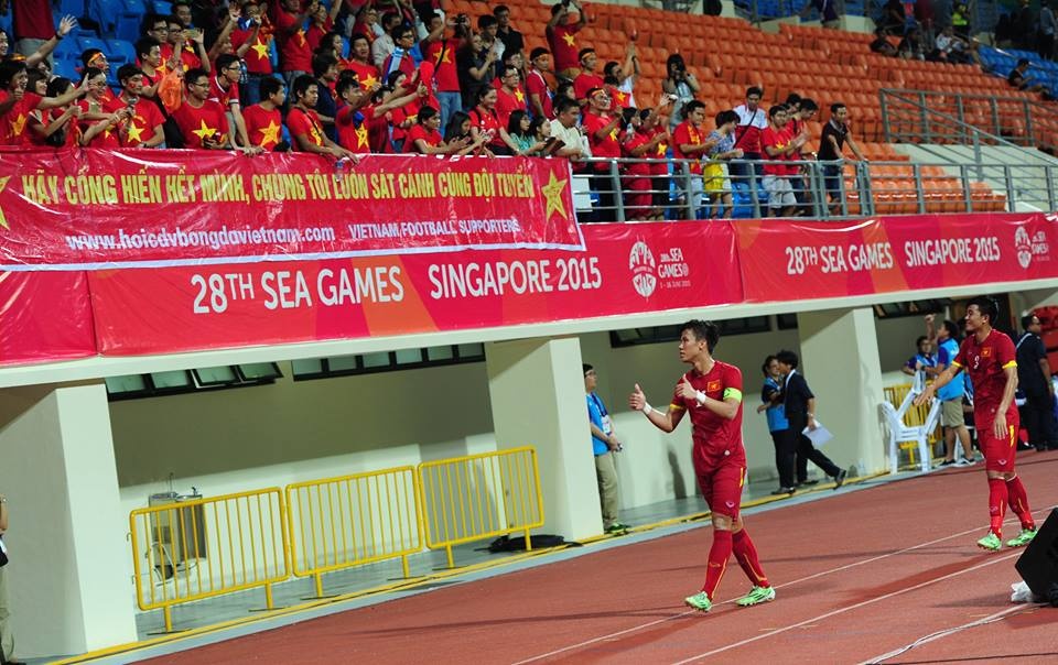 | Sau khi trận đấu kết thúc, đội trưởng Quế Ngọc Hải cùng các đồng đội chạy đến ngay góc sân Bishan để cảm ơn người hâm mộ. Họ đã cổ vũ rất nhiệt tình trong suốt 90 phút để các cầu thủ thi đấu tưng bừng, đánh bại U23 Đông Timor 4-0, vươn lên ngôi đầu bảng cũng như chắc chắn giành vé vào bán kết. |