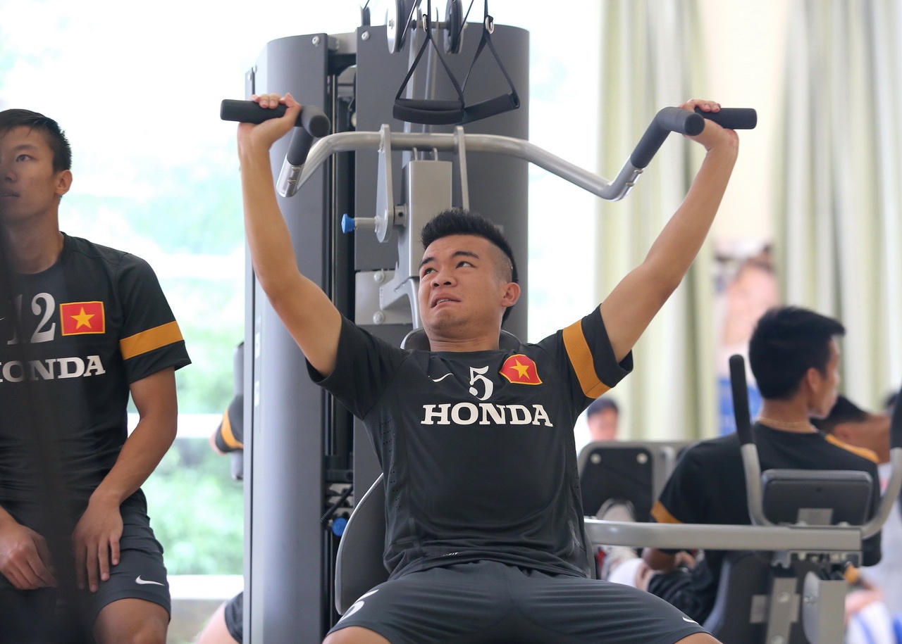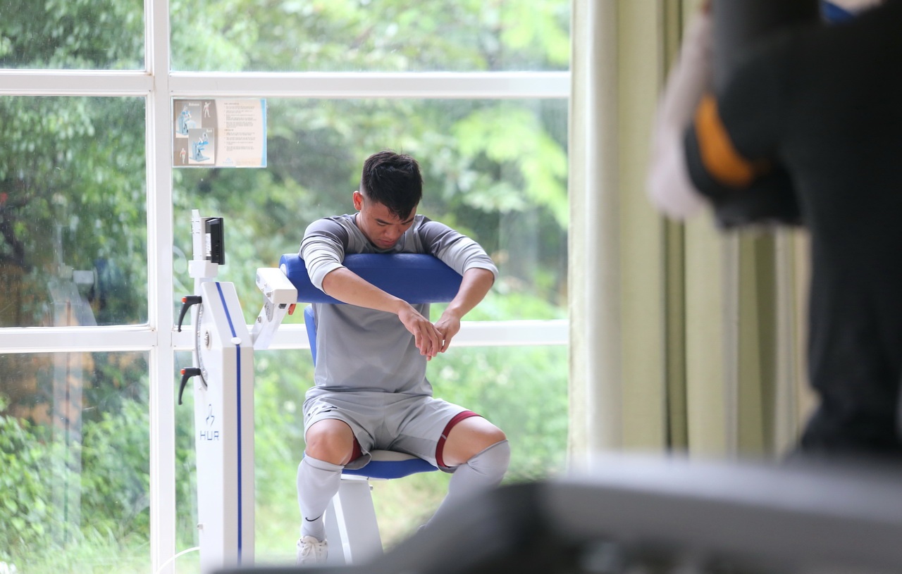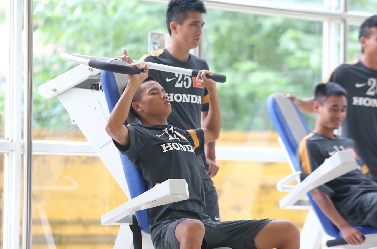 | Hoàng Thịnh đã nhiều lần tập trung cùng ĐTQG cũng như U23 nên không quá lạ lẫm với màn nhồi thể lực của BHL. |