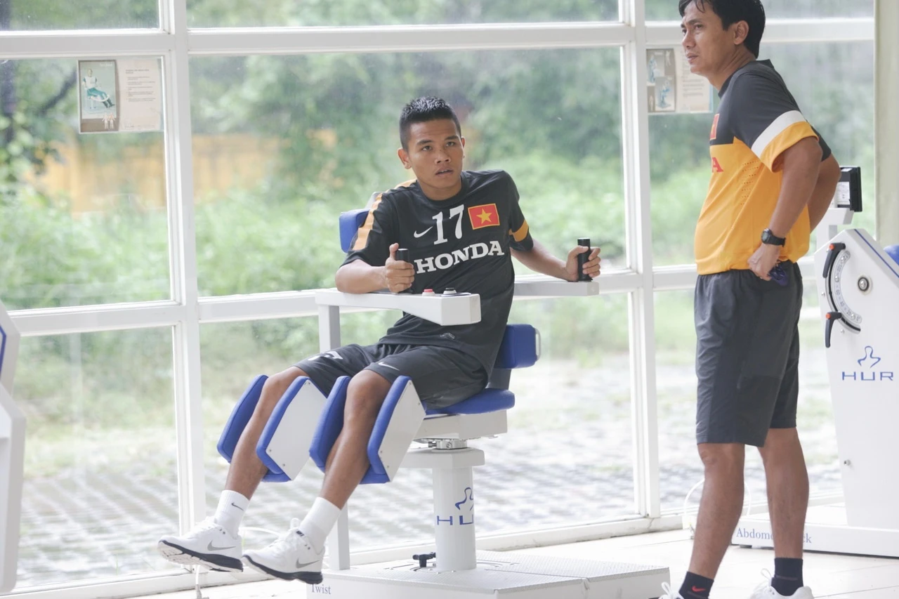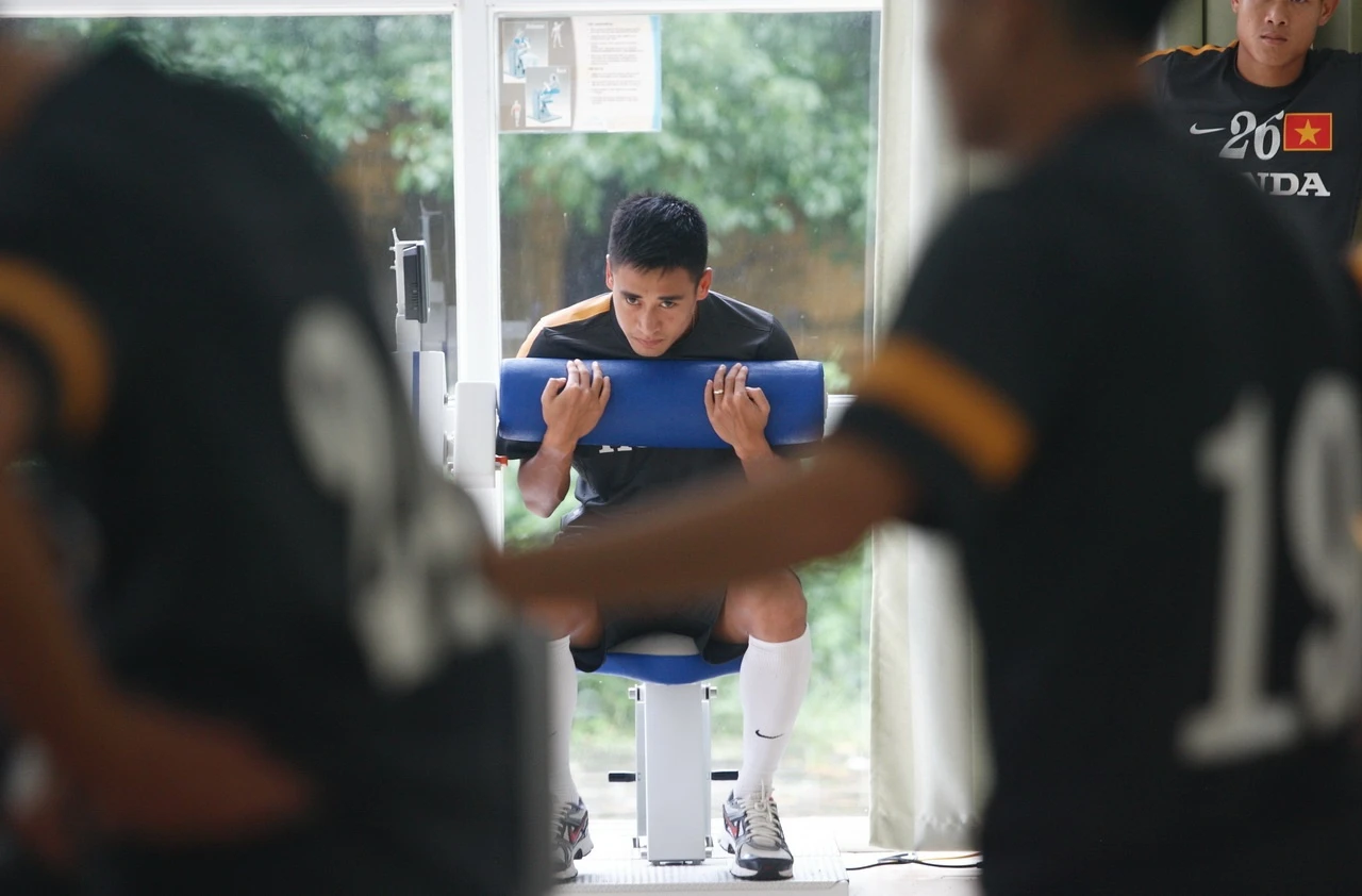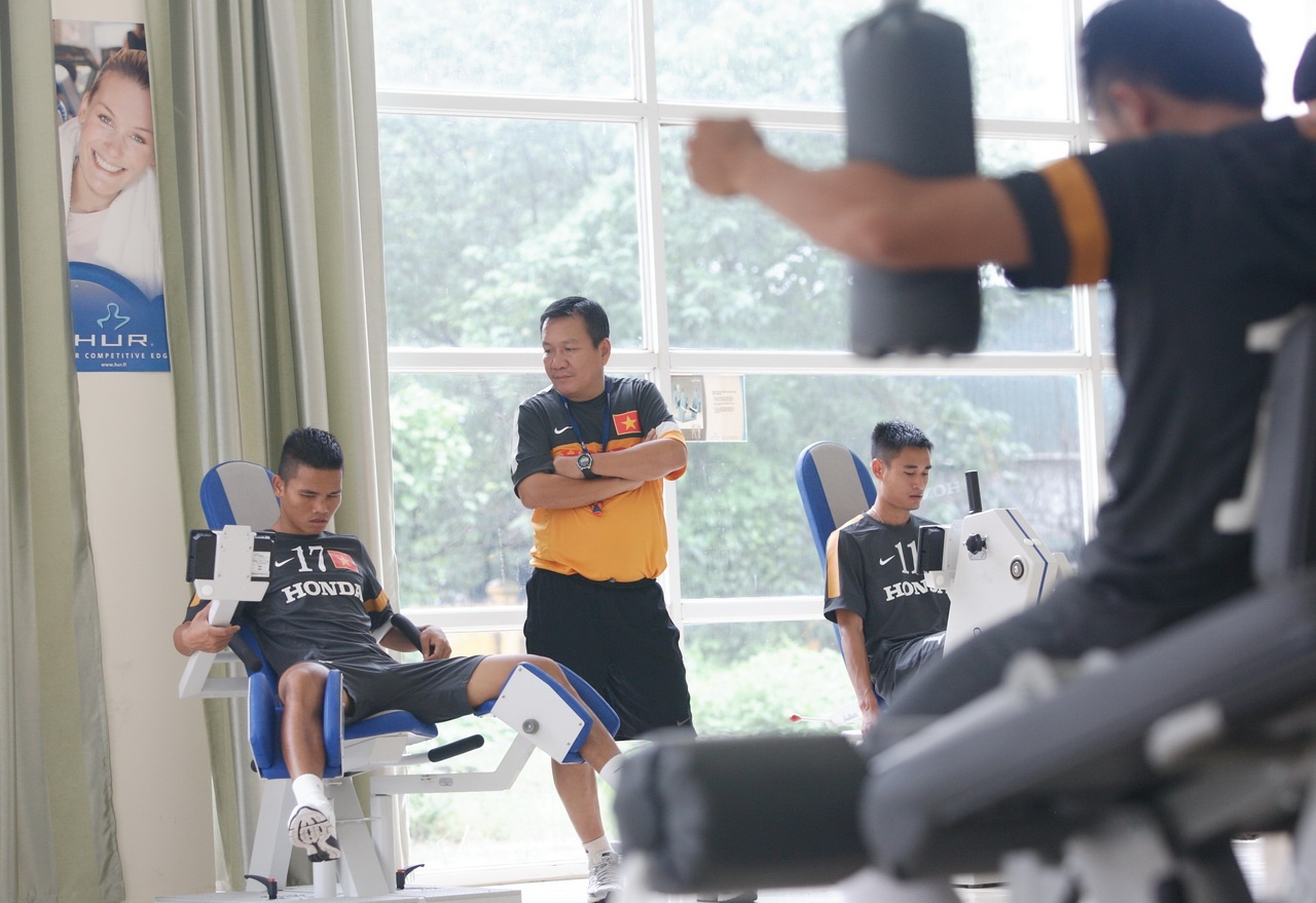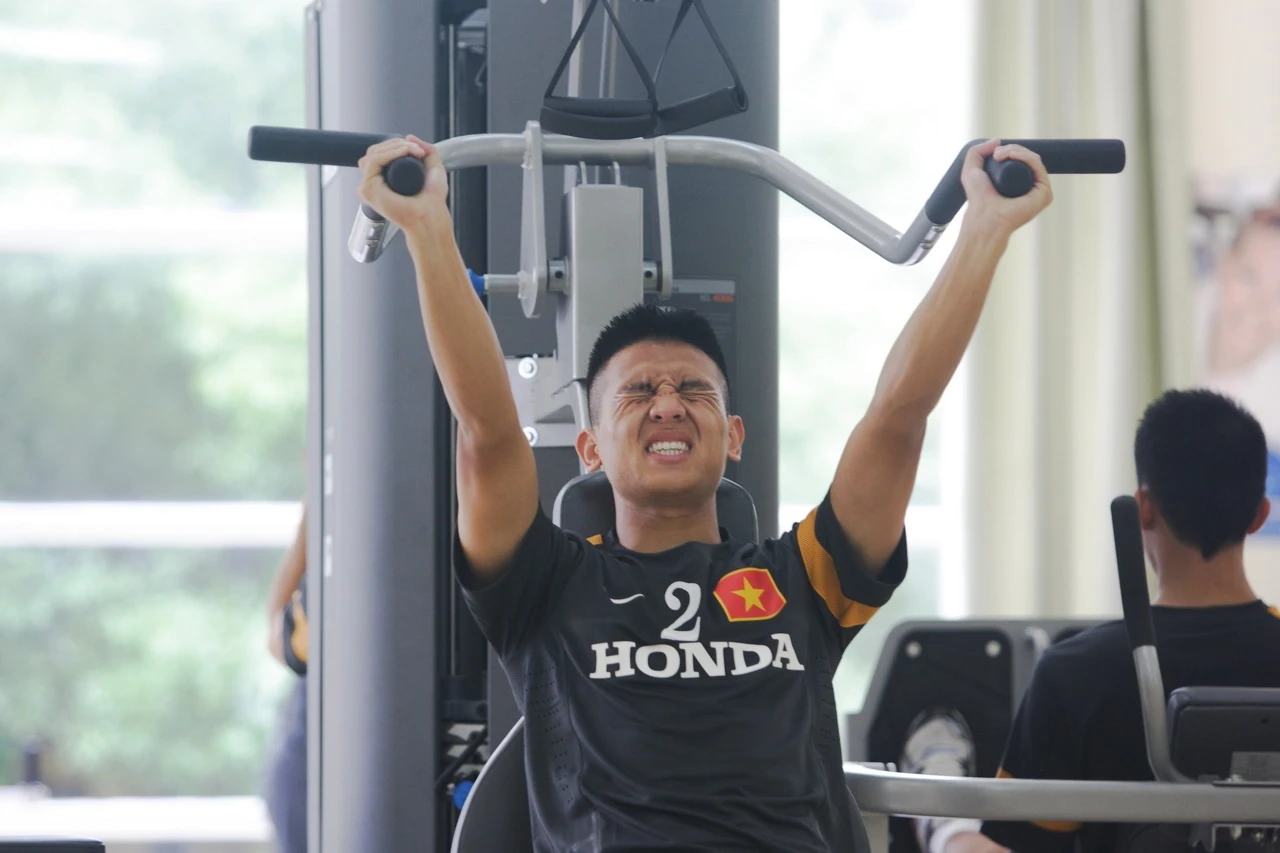 | Hoàng Thịnh đã nhiều lần tập trung cùng ĐTQG cũng như U23 nên không quá lạ lẫm với màn nhồi thể lực của BHL. |